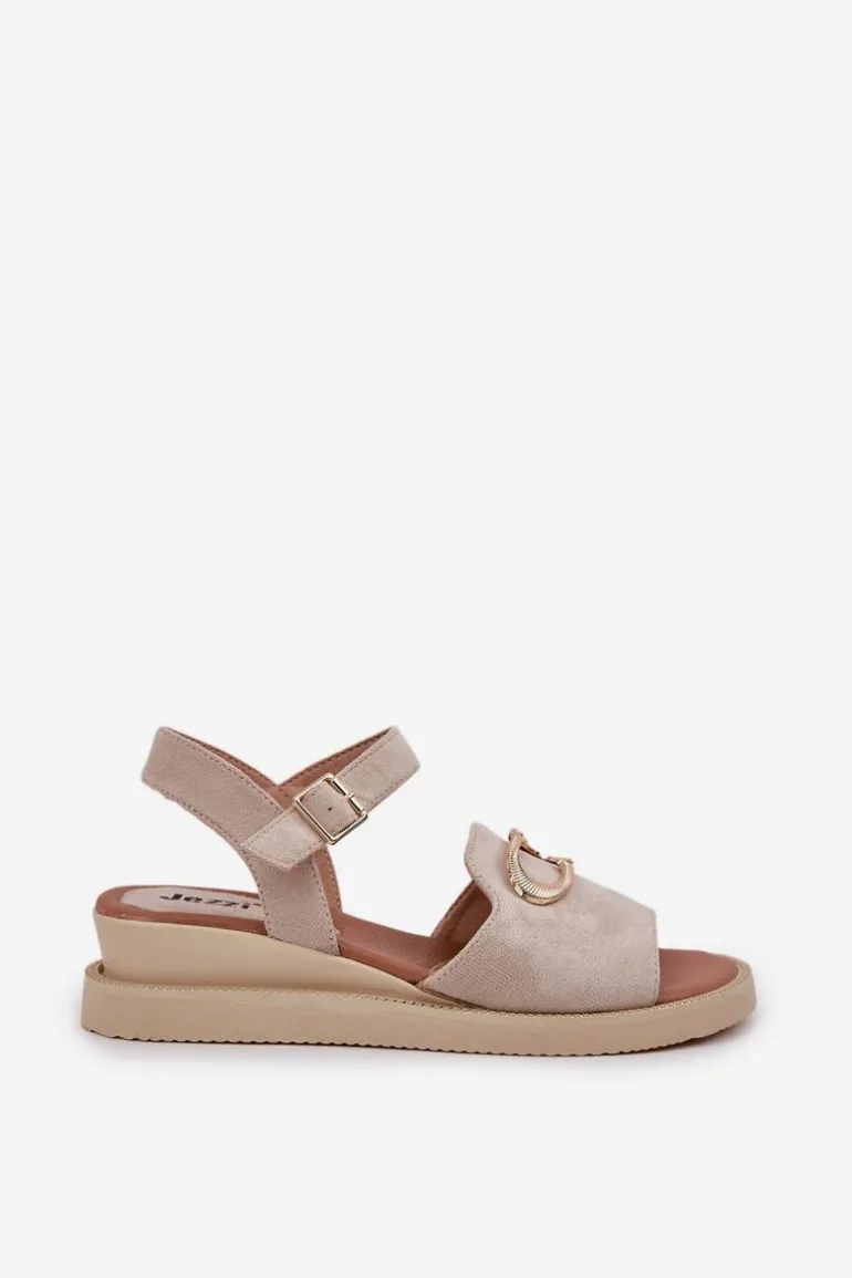 Sandały damskie od marki Jezzi. Wykonane z eko zamszu, to elegancka i komfortowa propozycja na ciepłe dni. Osadzone na koturnie, dodają lekkości i stabilności, zapewniając wygodę przez cały dzień. Z przodu ozdobny detal nadaje subtelnego uroku. Zapinane na regulowany pasek ze sprzączką, umożliwiają idealne dopasowanie do stopy. Te sandały doskonale łączą styl z funkcjonalnością, świetnie komponując się z letnimi stylizacjami. Przy wyborze rozmiaru prosimy sugerować się tabelą rozmiarów.