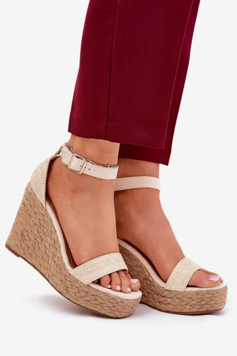 Sandały damskie z plecionką, które łączą styl z komfortem. Osadzone na koturnie. Zapinane na regulowany pasek ze sprzączką, co pozwala na idealne dopasowanie do stopy. Zakryte pięty dodają klasycznego wyglądu, a miękka wkładka gwarantuje komfort podczas chodzenia. Doskonałe na ciepłe dni, idealnie komponują się z sukienkami, spódnicami i spodniami, wprowadzając odrobinę elegancji i lekkości do każdej stylizacji. Przy wyborze rozmiaru prosimy sugerować się tabelą rozmiarów.