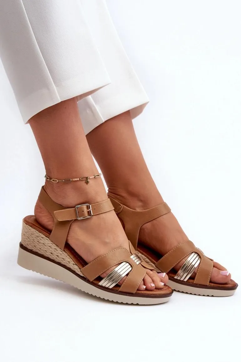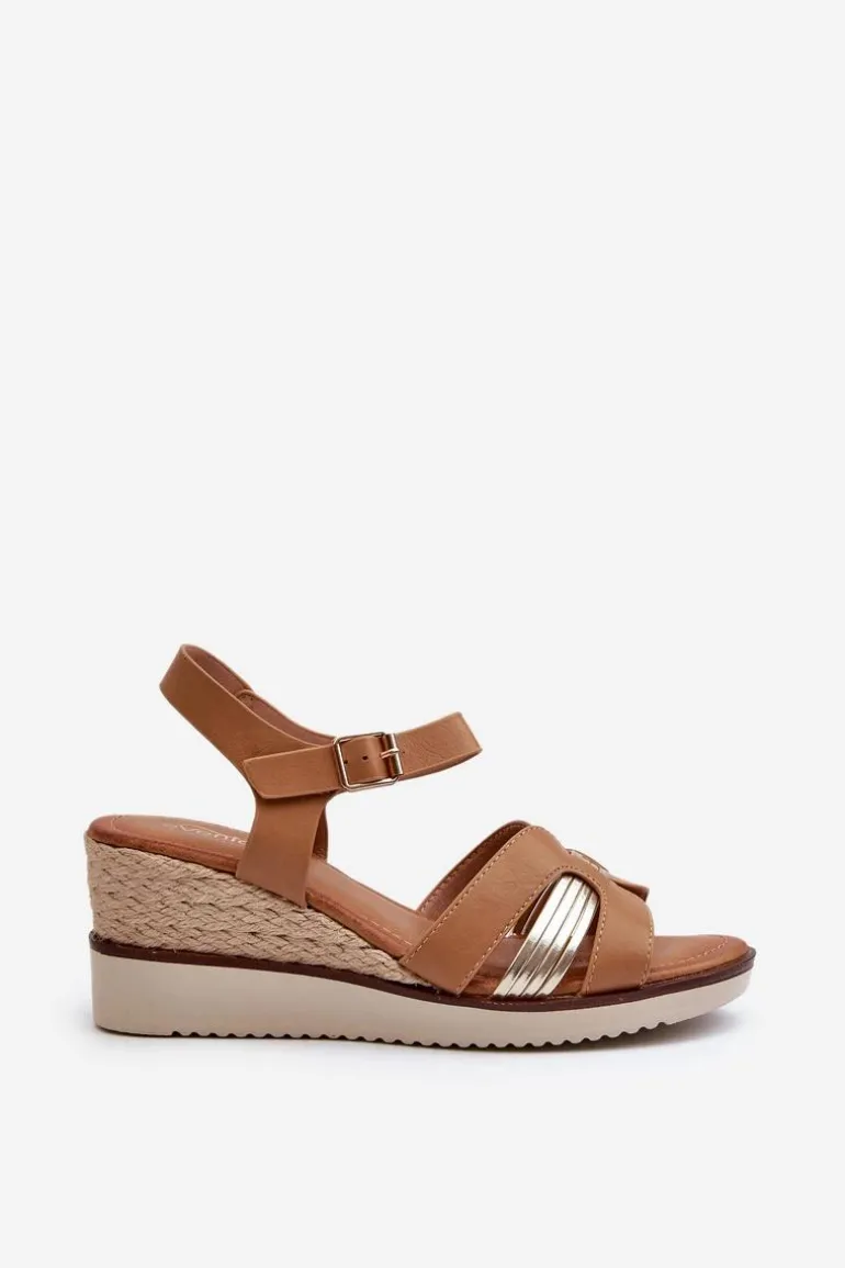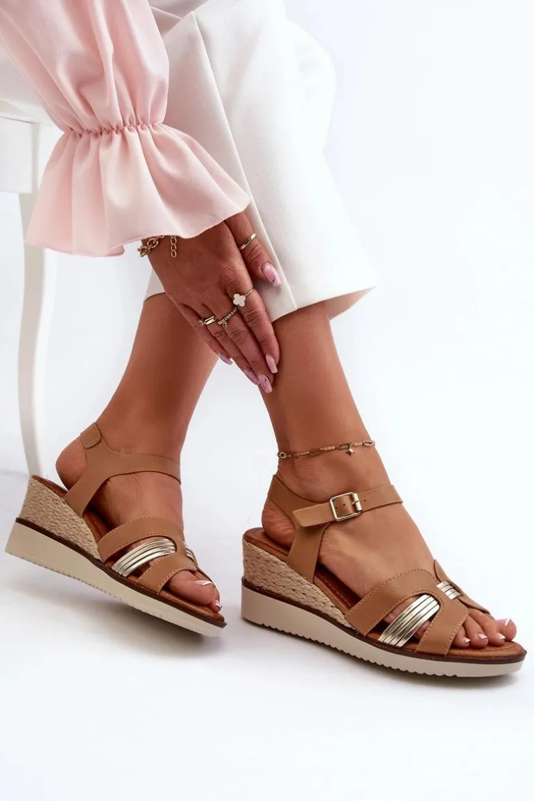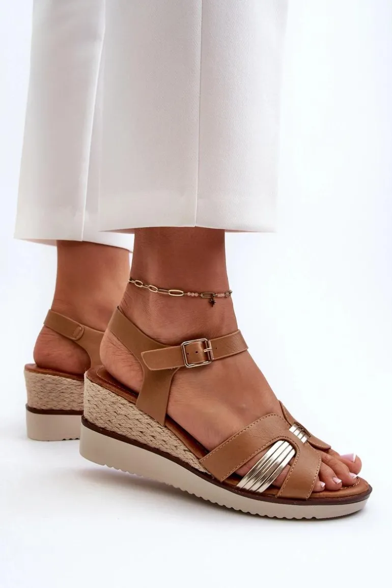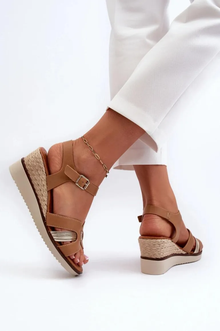 Sandały Damskie Na Koturnie Z Plecionką Brązowe Starlenna