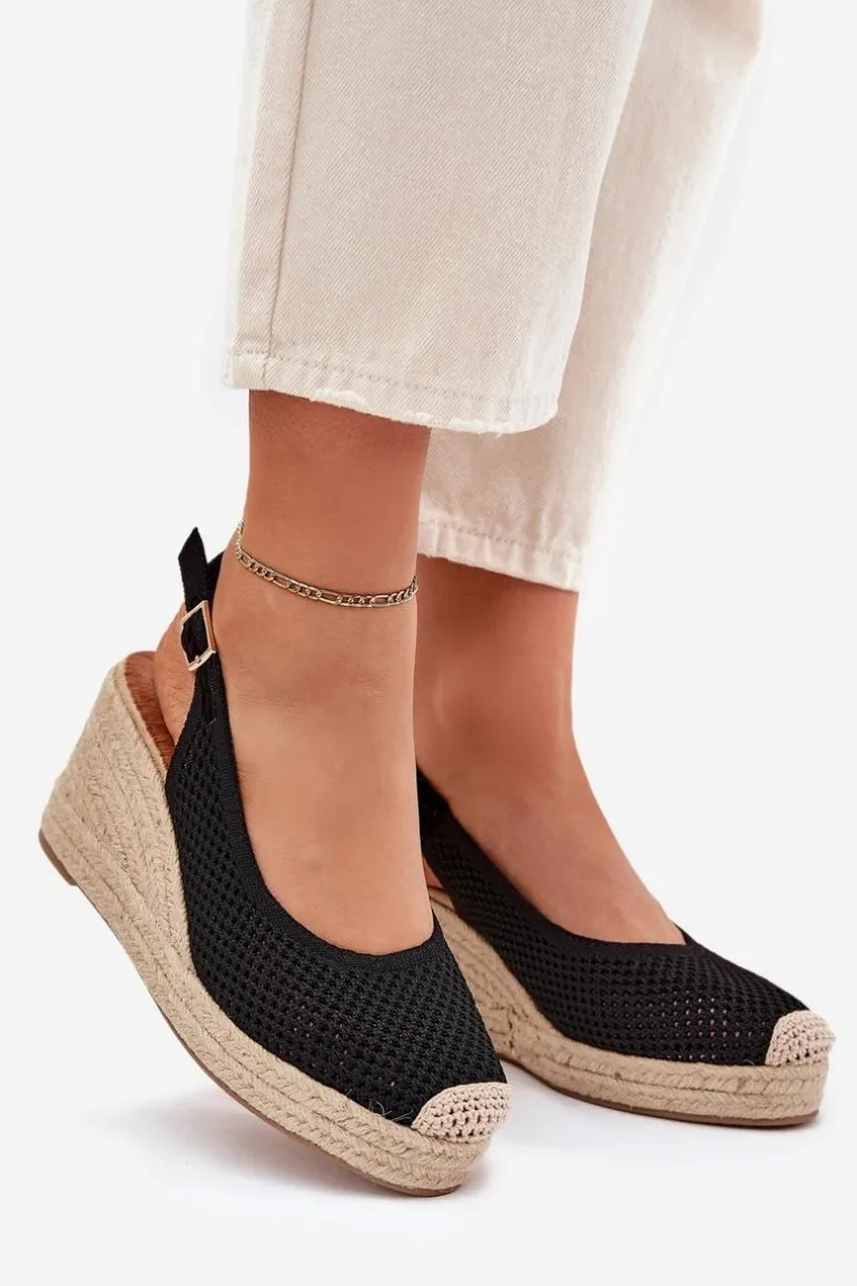 Sandały Damskie Na Koturnie Z Plecionką Czarne Tulliata