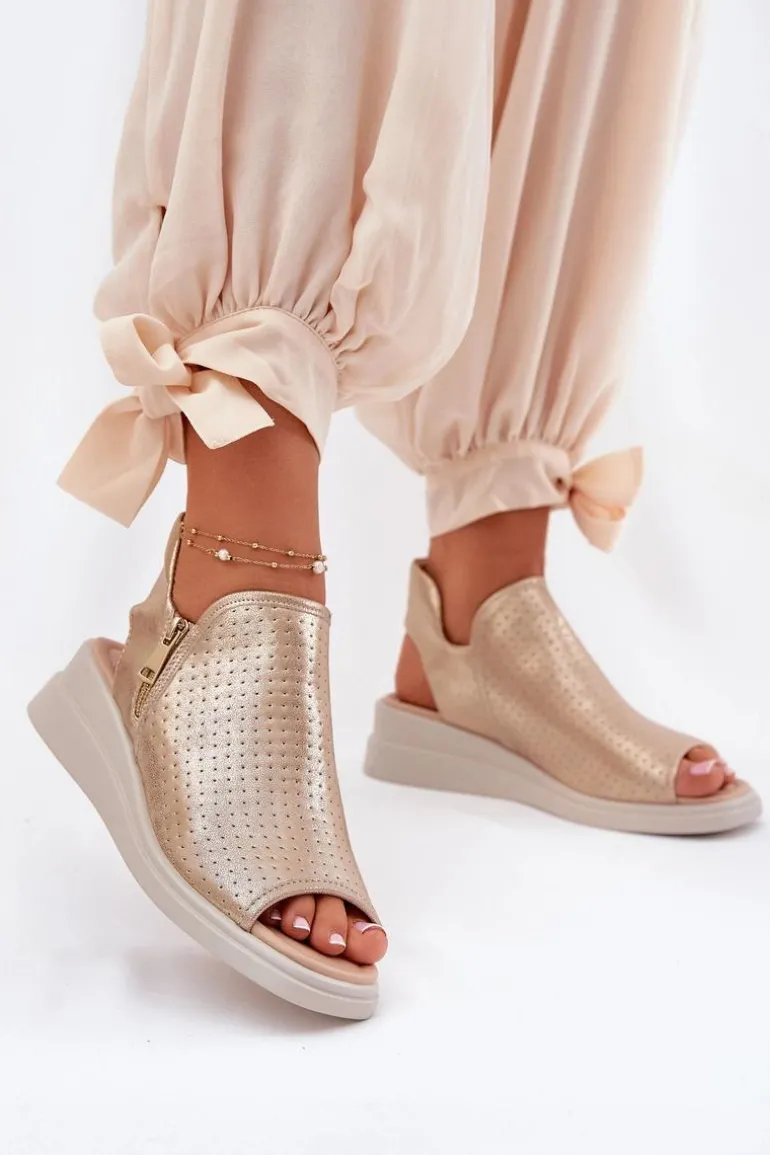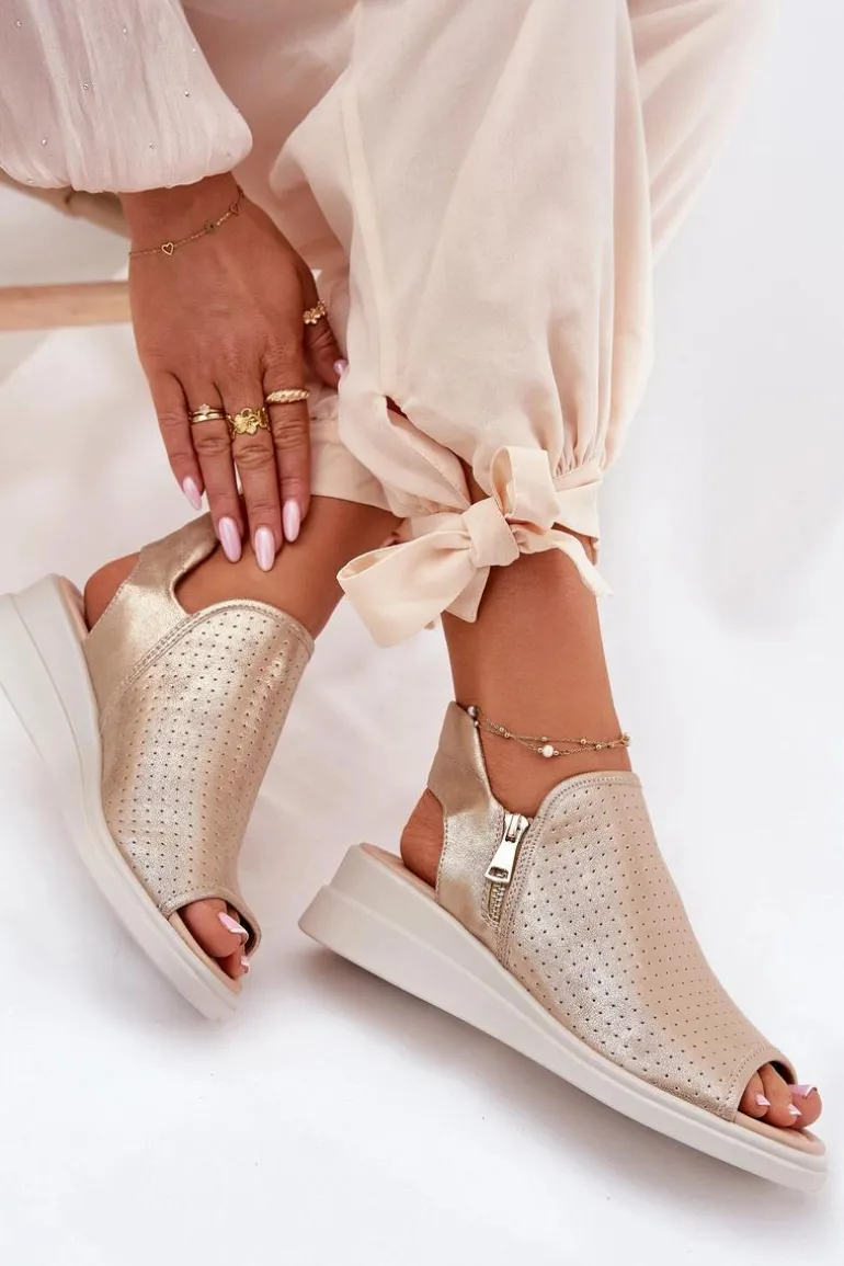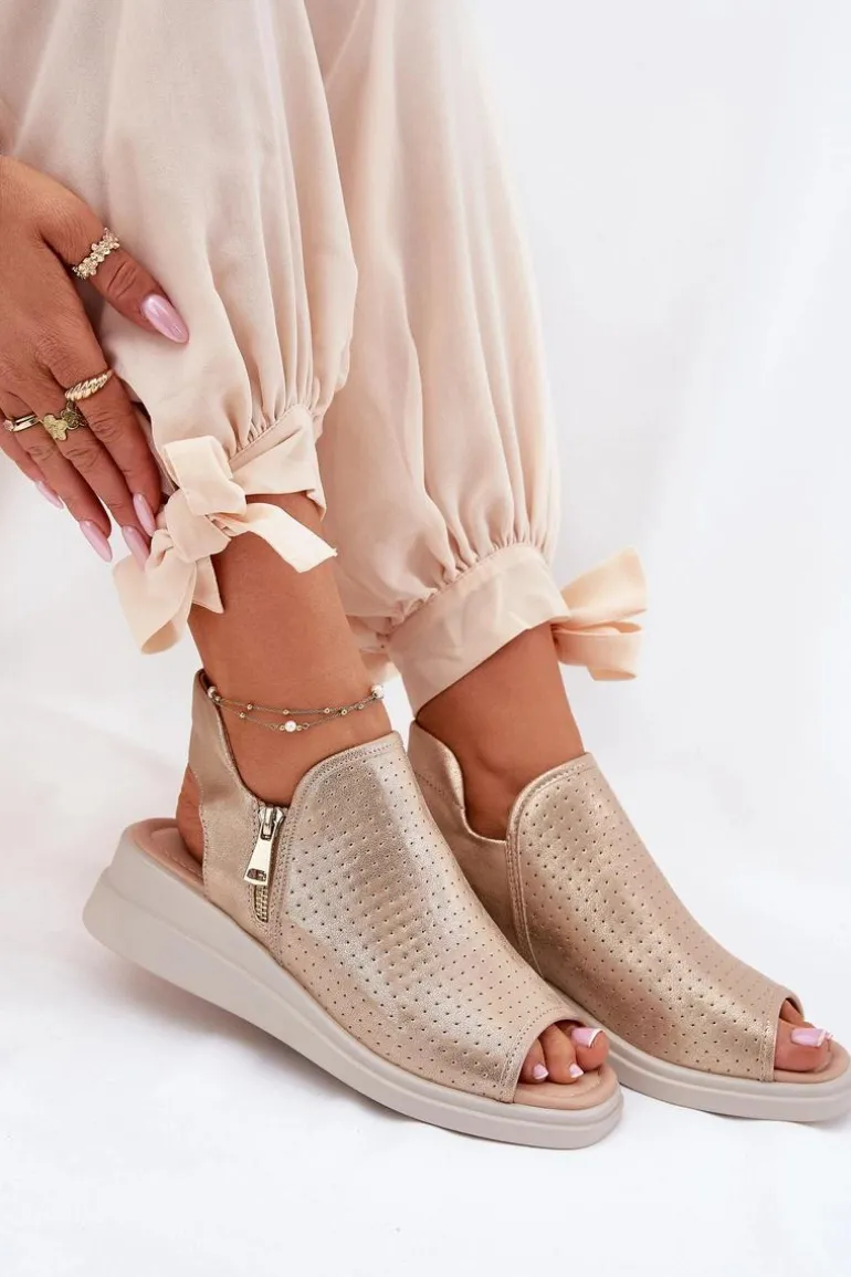 Sandały Damskie Na Koturnie Złote Mevinette