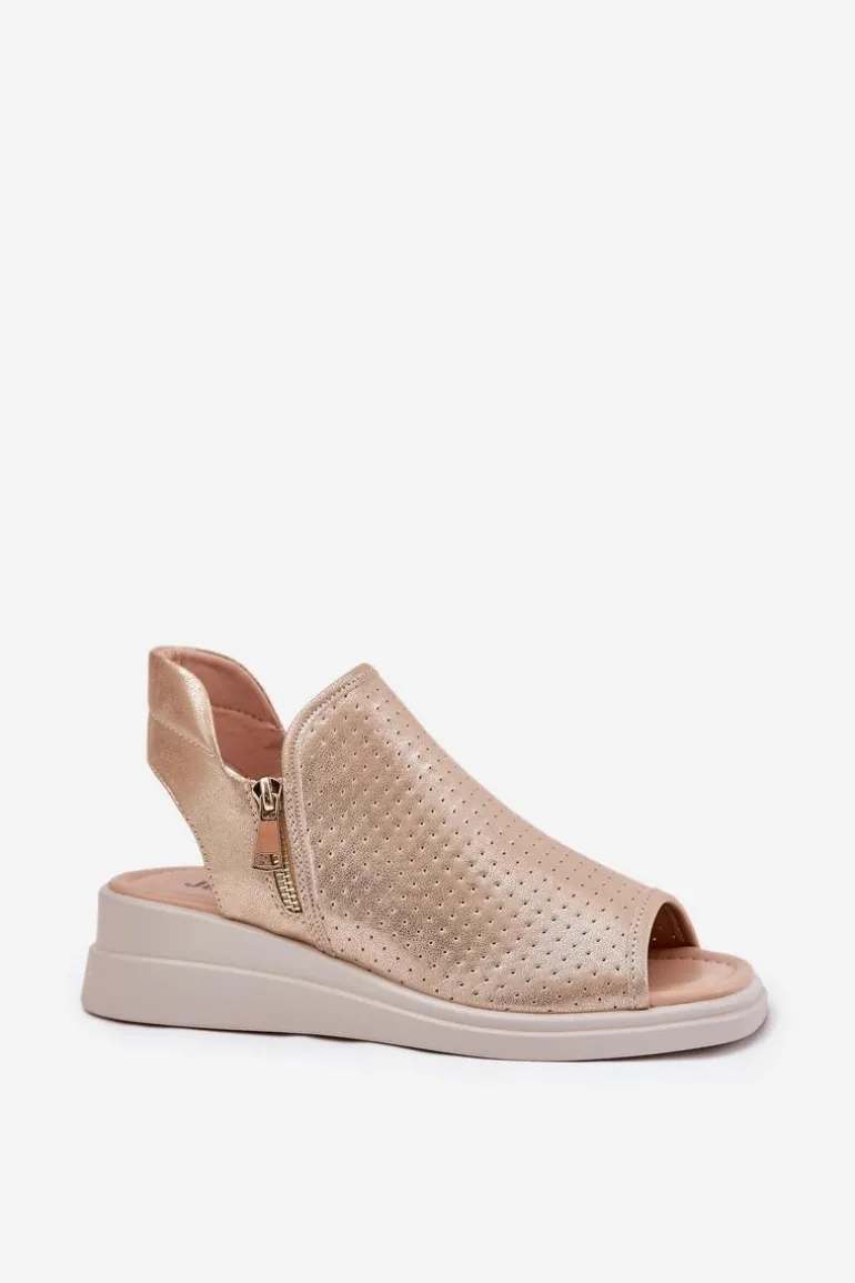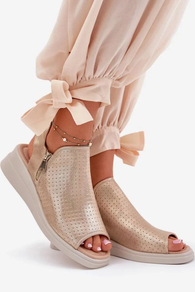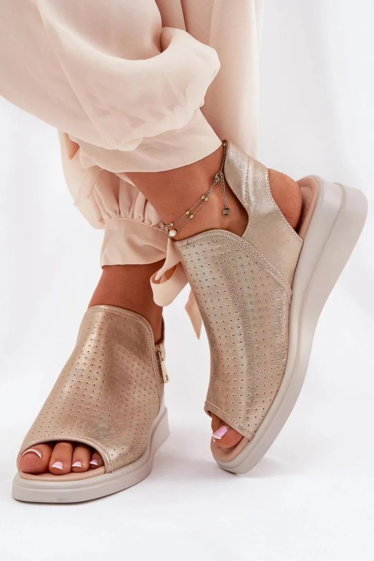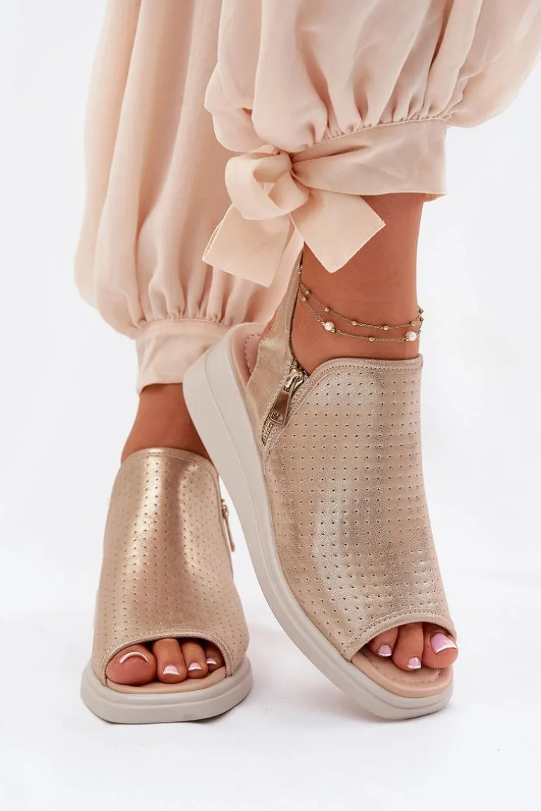 Sandały Damskie Na Koturnie Złote Mevinette