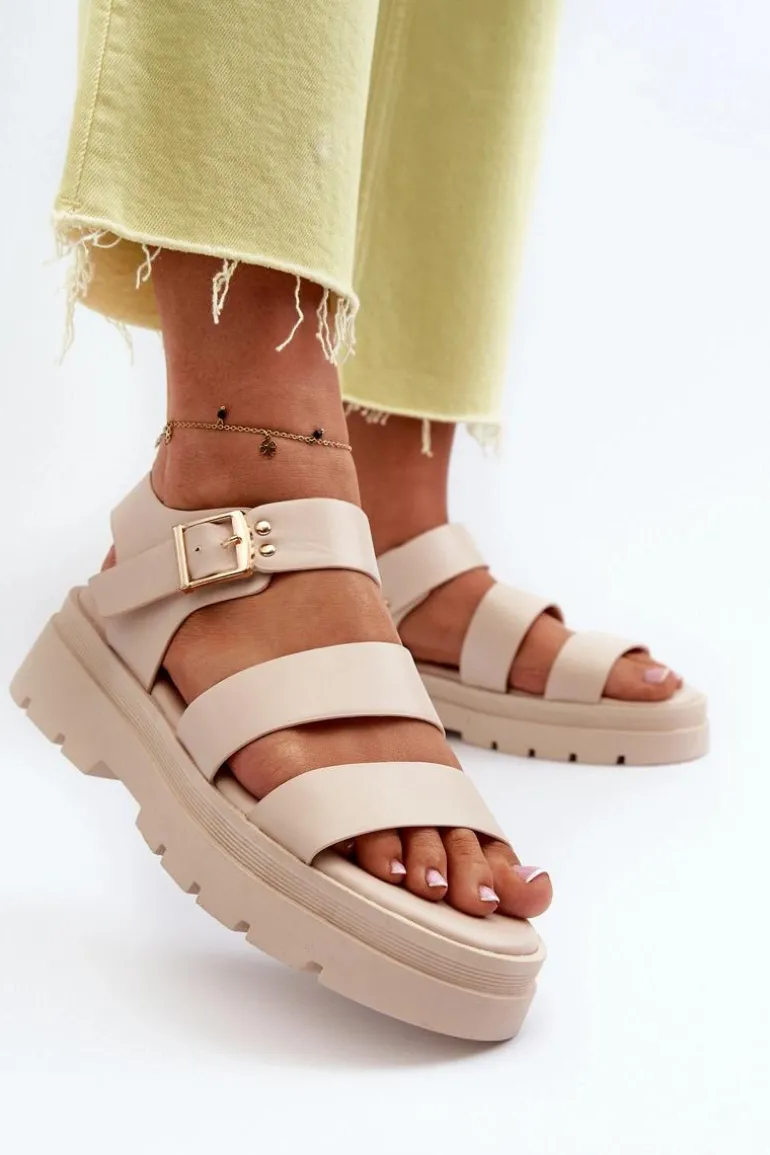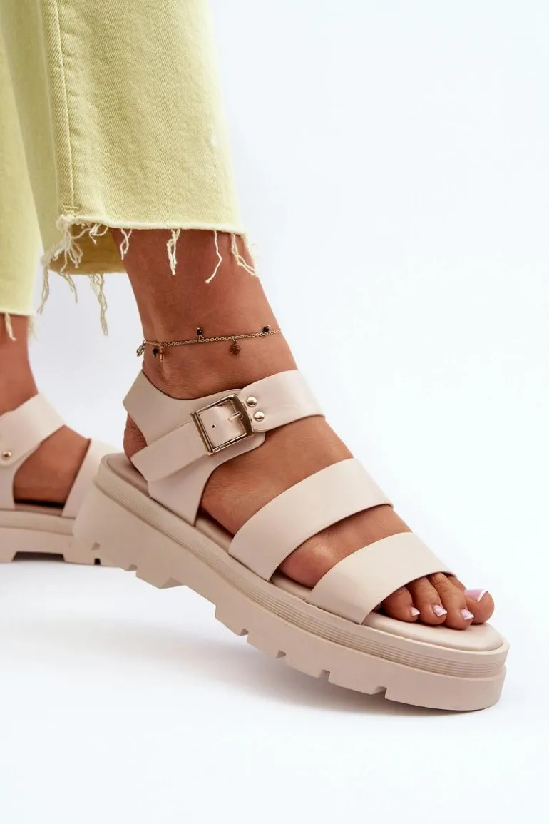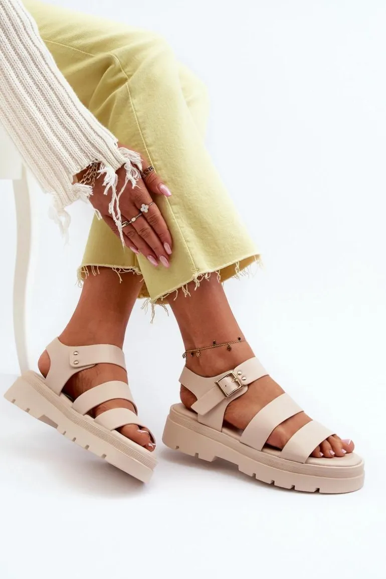 Modne sandały damskie na grubej podeszwie wykonane z eko skóry to idealny wybór na letnie dni. Zapinane na regulowany pasek ze sprzączką, gwarantują doskonałe dopasowanie do stopy. Dodatkowo ich designerski wygląd sprawia, że doskonale komponują się z różnymi stylizacjami, dodając im nuty nowoczesności i świeżości. Przy wyborze rozmiaru prosimy sugerować się tabelą rozmiarów.