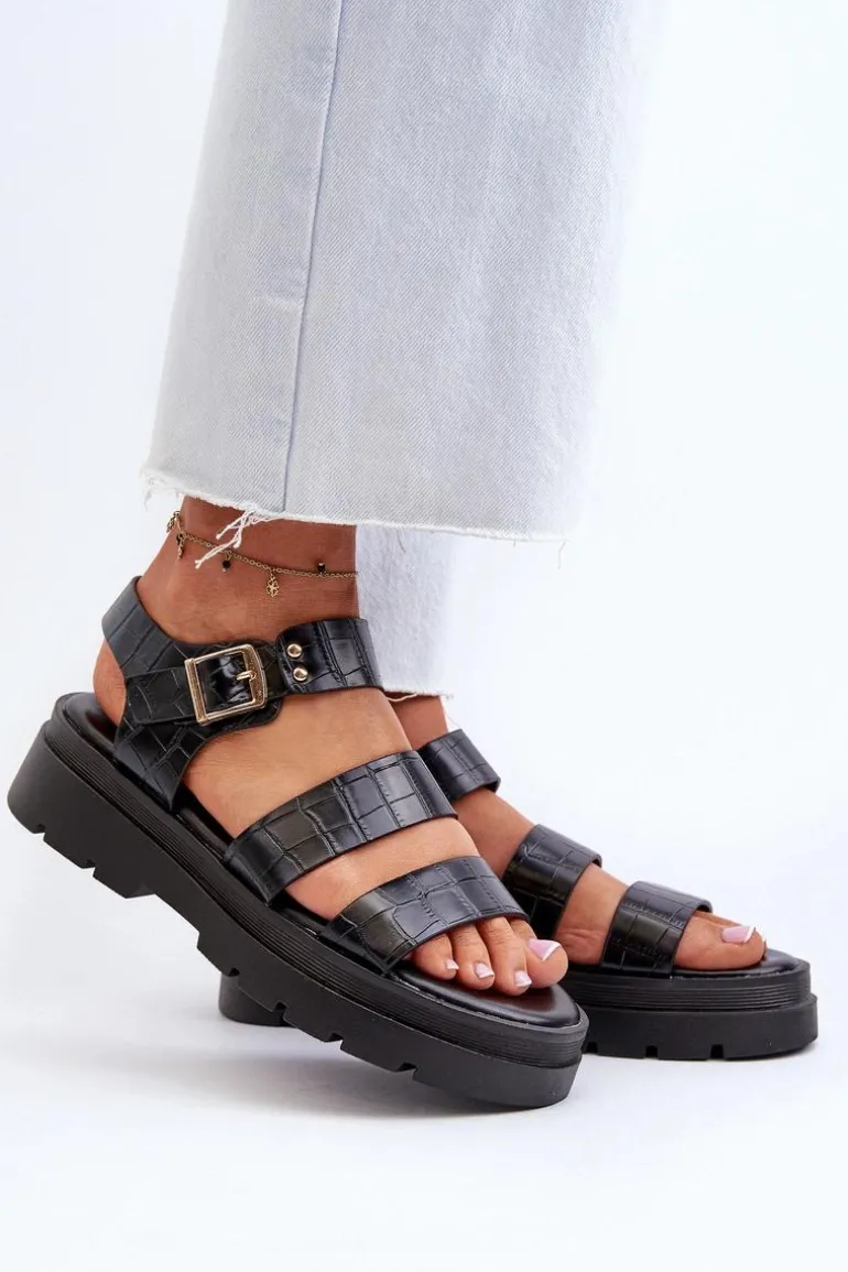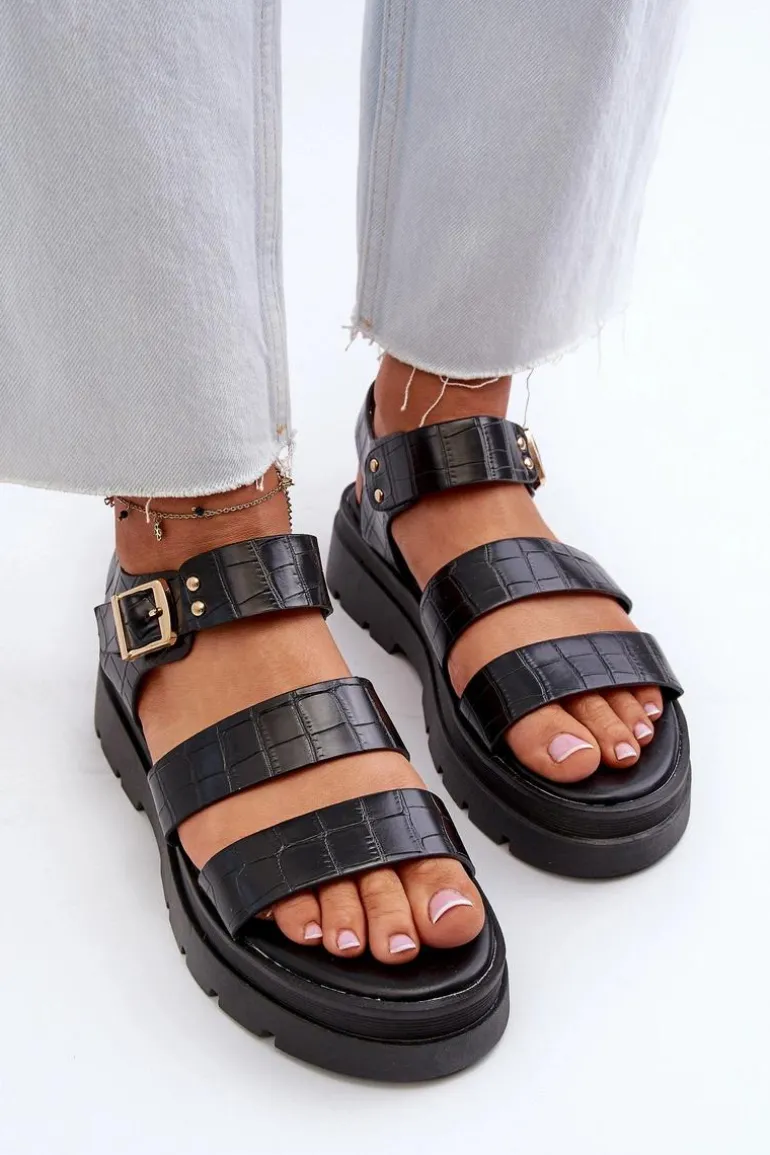Modne sandały damskie na grubej podeszwie wykonane z eko skóry to idealny wybór na letnie dni. Zapinane na regulowany pasek ze sprzączką, gwarantują doskonałe dopasowanie do stopy. Dodatkowo ich designerski wygląd sprawia, że doskonale komponują się z różnymi stylizacjami, dodając im nuty nowoczesności i świeżości. Przy wyborze rozmiaru prosimy sugerować się tabelą rozmiarów.