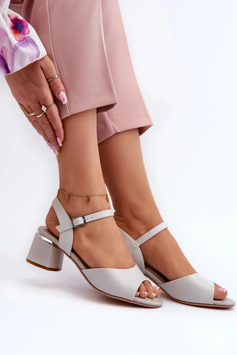 Sandały Damskie Na Niskim Obcasie Eko Skórzane Sergio Leone SK876 Szare