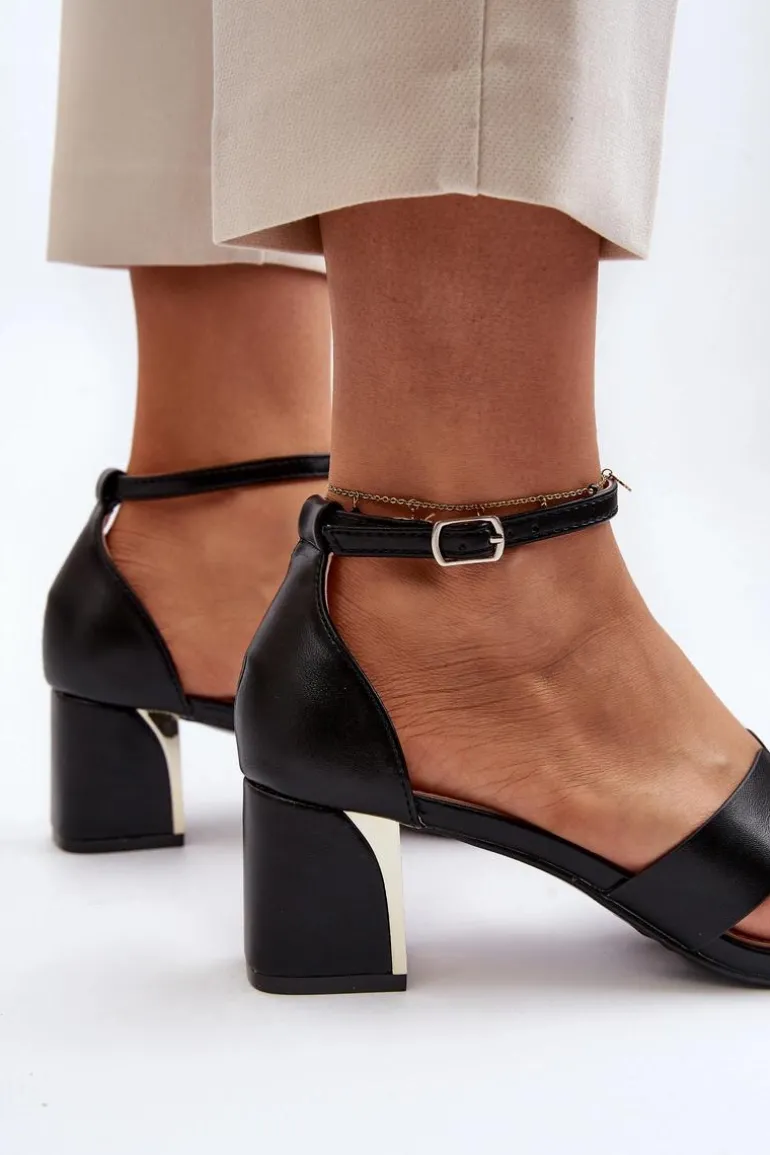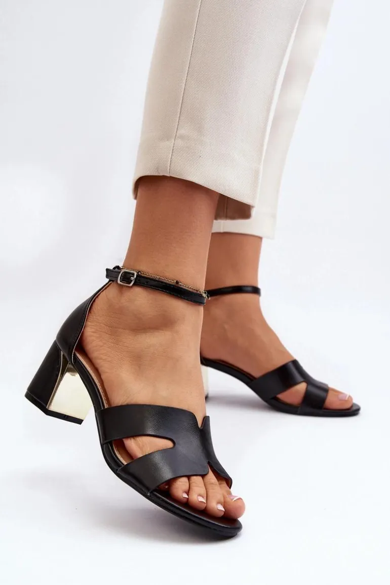 Sandały damskie osadzone na obcasie w postaci klocka z lustrzanym elementem. Zapinane na regulowany pasek ze sprzączką, łatwo dopasujesz je do swojej stopy, co zapewni dodatkowy komfort. Ten model to świetna propozycja dla każdej kobiety, która ceni sobie zarówno komfort, jak i styl w letnich stylizacjach! Przy wyborze rozmiaru prosimy sugerować się tabelą rozmiarów.