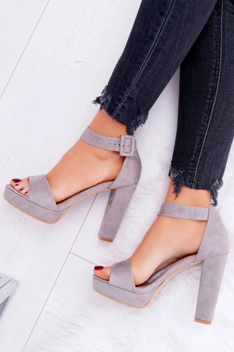 Sandały Damskie Na Obcasie Słupku Zamsz Szare ShakeUp