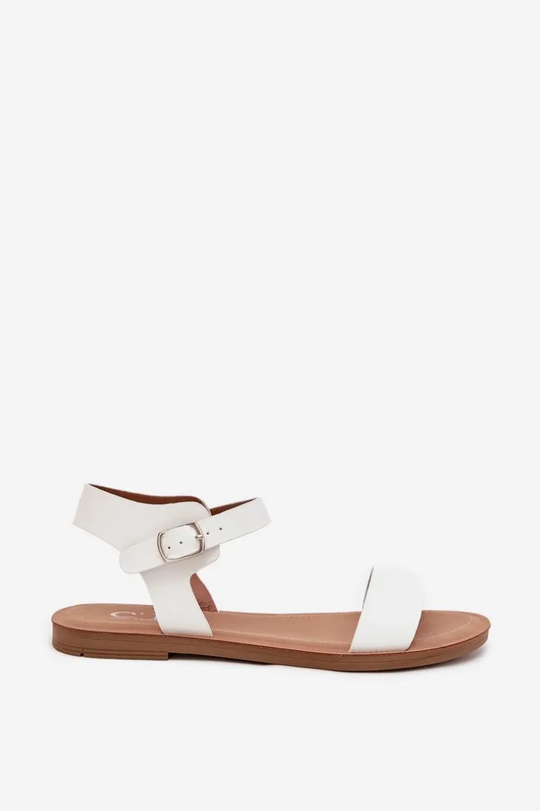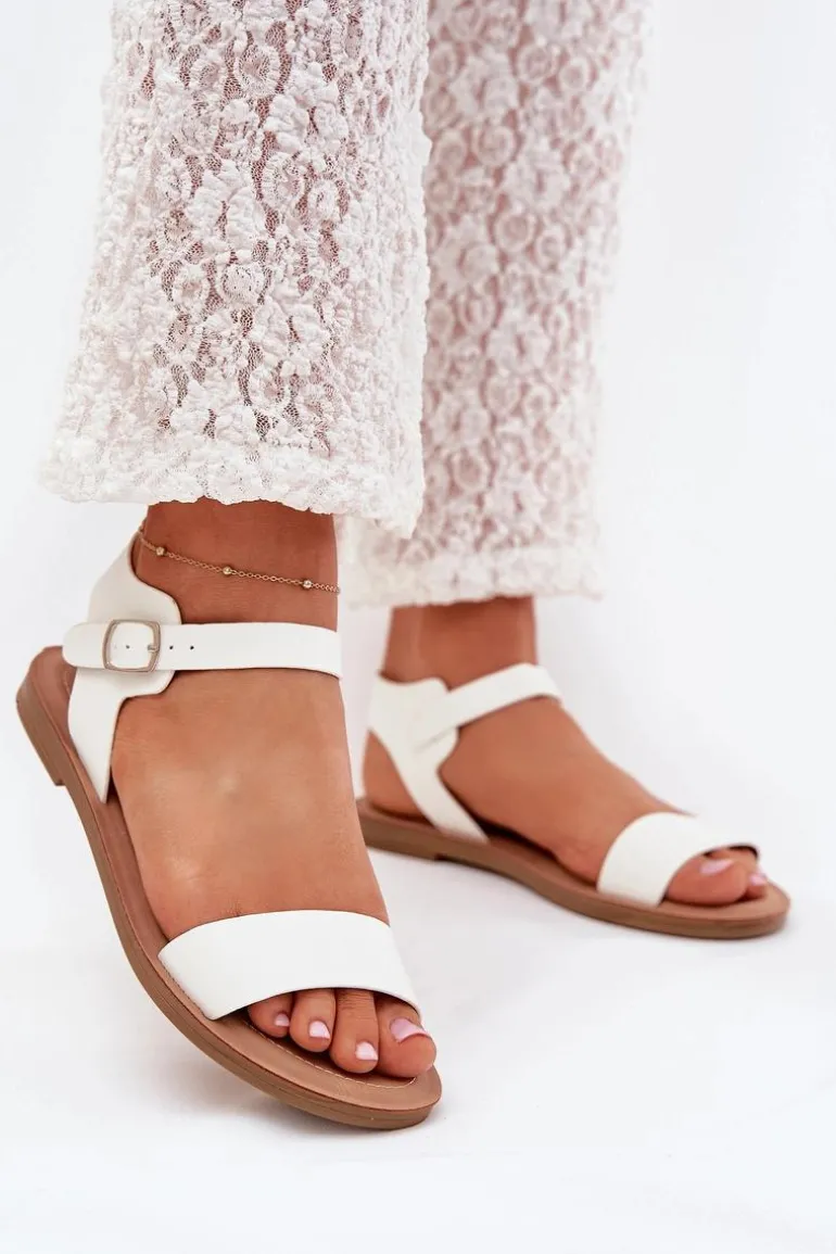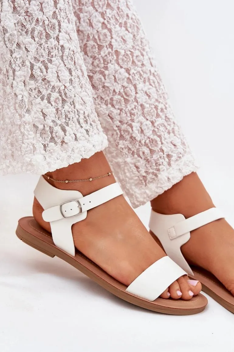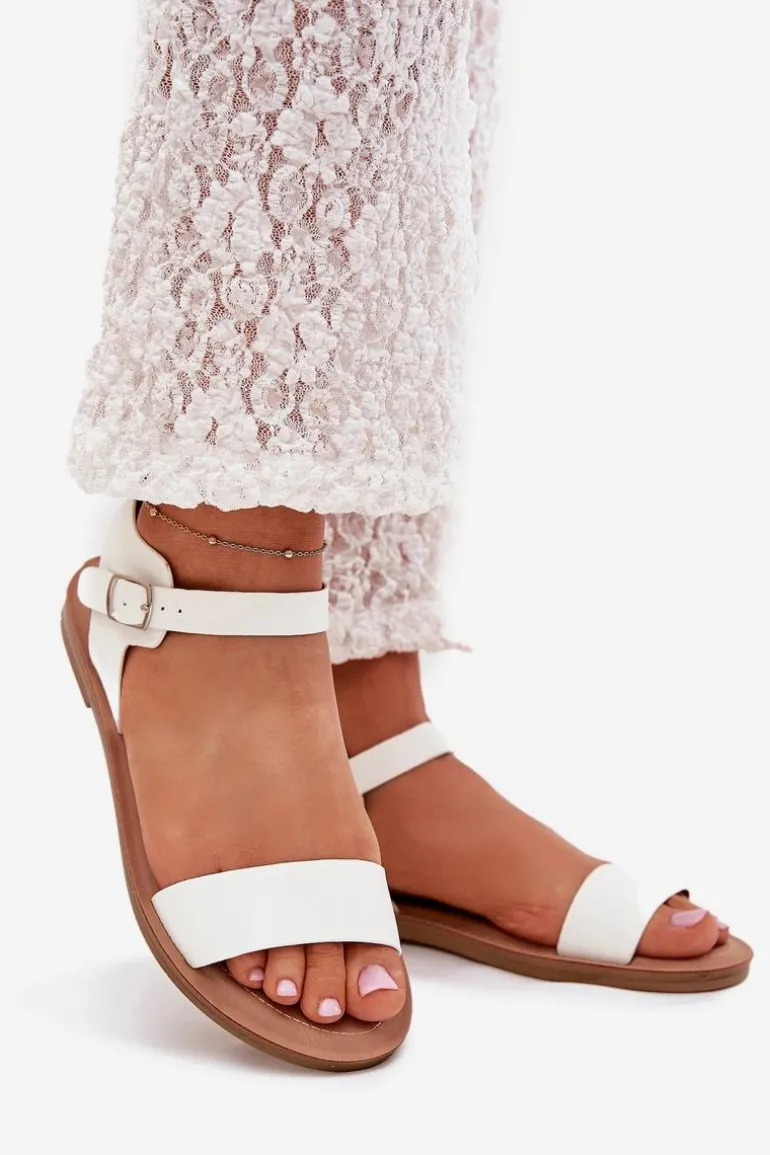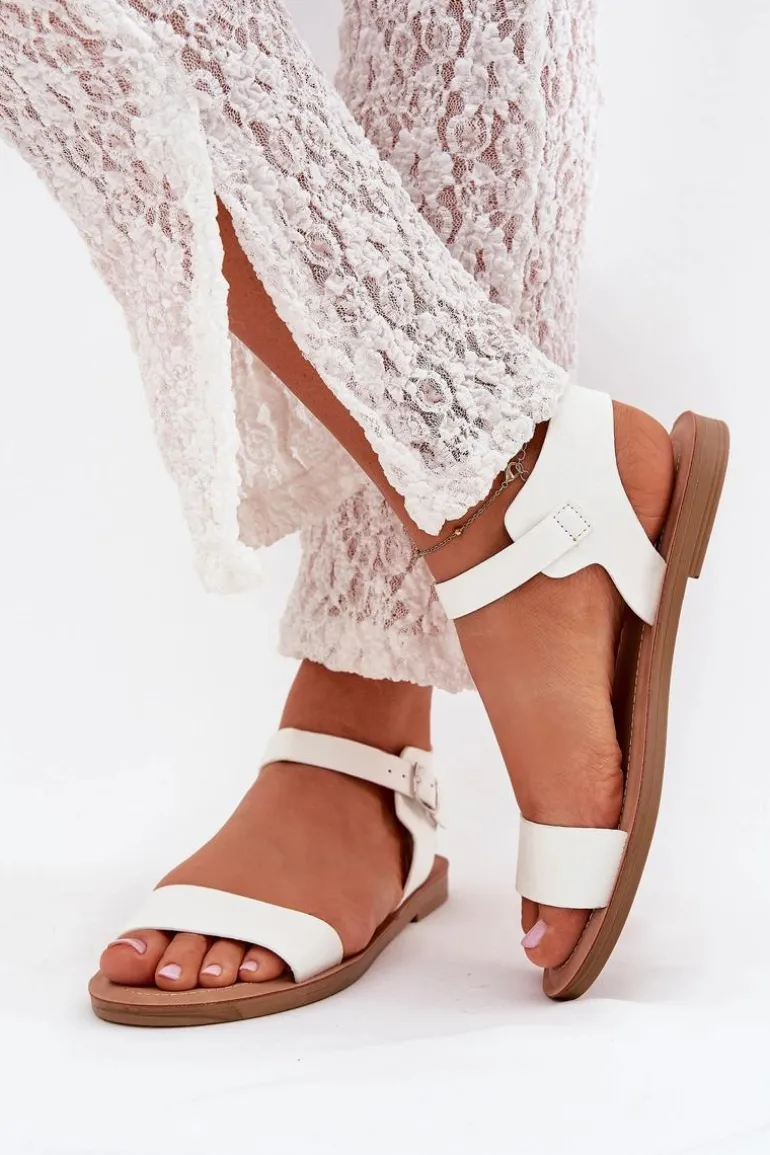 Sandały Damskie Na Płaskim Obcasie Eko Skórzane Białe Kivara