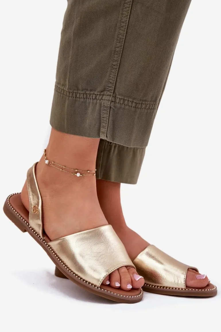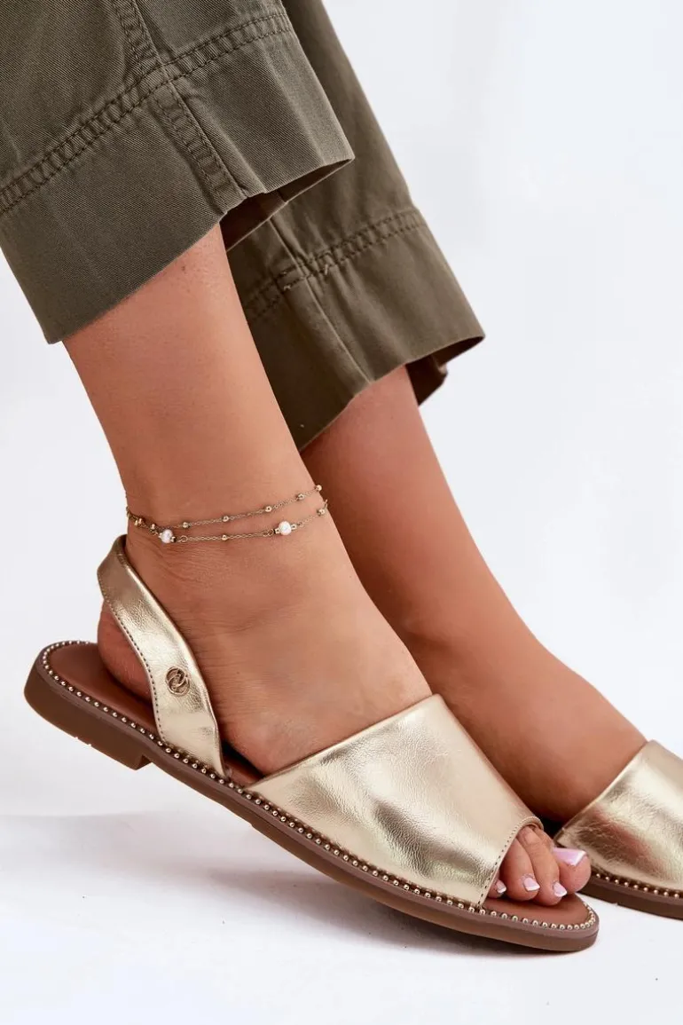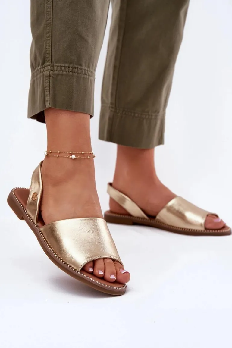 Sandały damskie z eko skóry to elegancka propozycja na ciepłe dni. Osadzone na płaskim obcasie, zapewniają wygodę i komfort przez cały dzień. Na pasku z tyłu znajduje się subtelny ozdobny detal, który dodaje uroku. Idealne do sukienek, spódnic oraz spodni materiałowych, stanowią doskonałe uzupełnienie letnich outfitów. Przy wyborze rozmiaru prosimy kierować się tabelą rozmiarów.