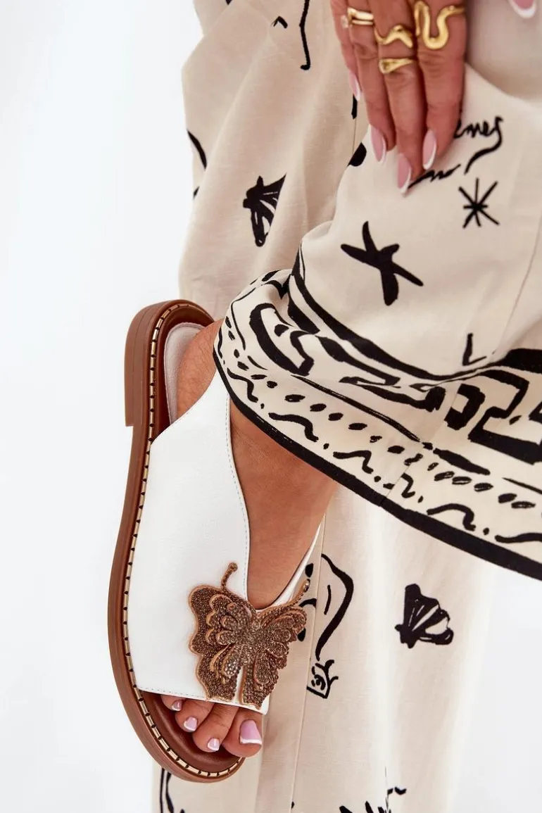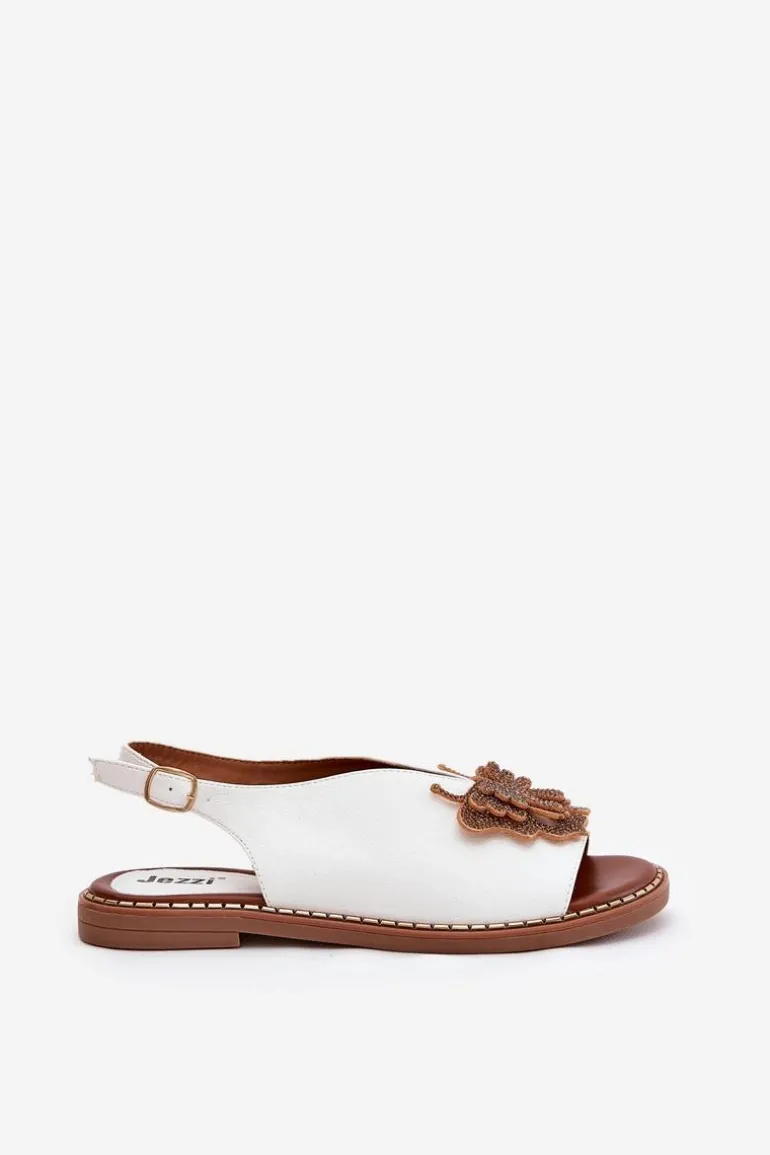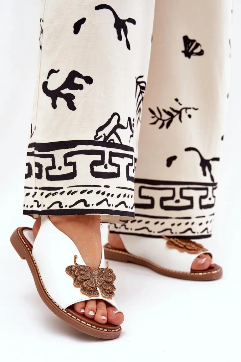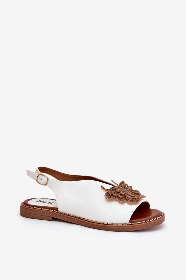 Sandały Damskie Na Płaskim Obcasie Z Ozdobą Białe Setorina