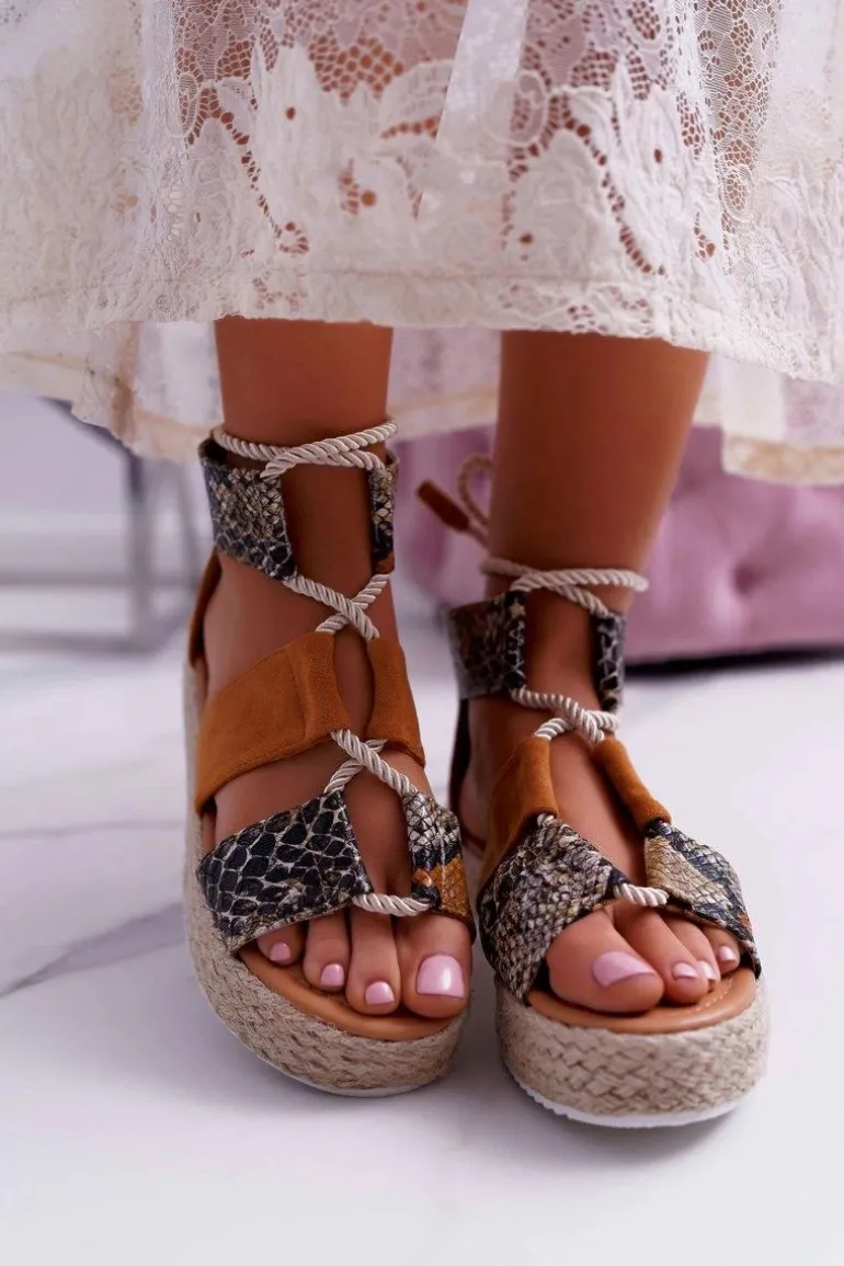 Damskie sandały na espadrylu świetnie sprawdzą się w upalne dni. Rozpinany zapiętek ułatwi zakładanie, a sznurowanie pozwoli je jeszcze lepiej dopasować. Mnogość kolorów i wysoka platforma to cechy którymi się wyróżniają. Przy wyborze rozmiaru prosimy sugerować się tabelą rozmiarów.