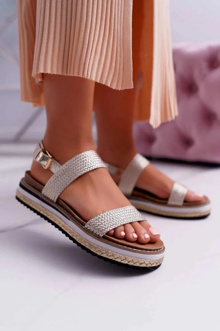 Sandały Damskie Na Platformie Espadryl Złote Sarabel