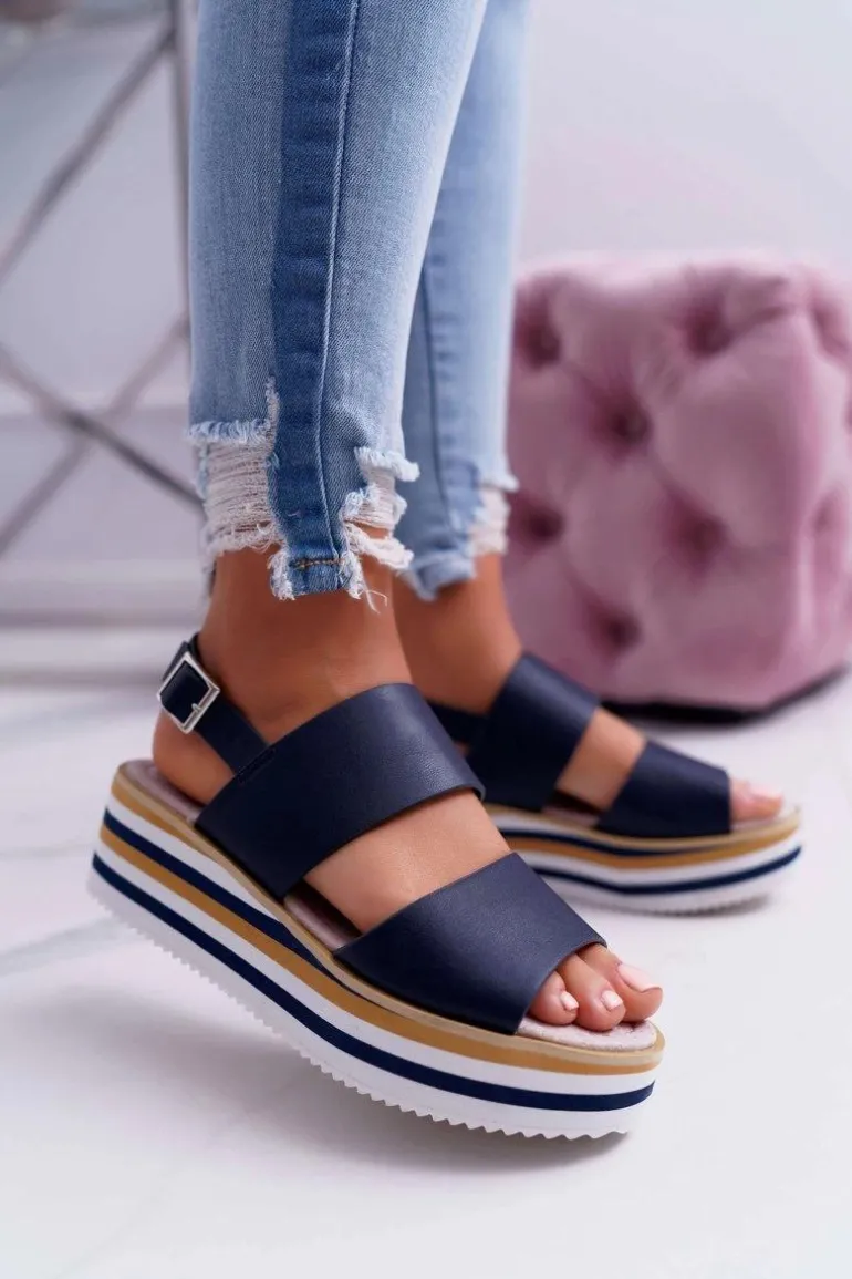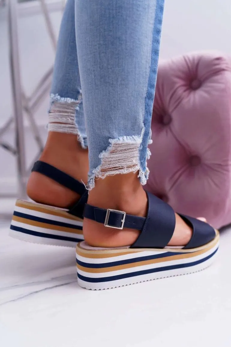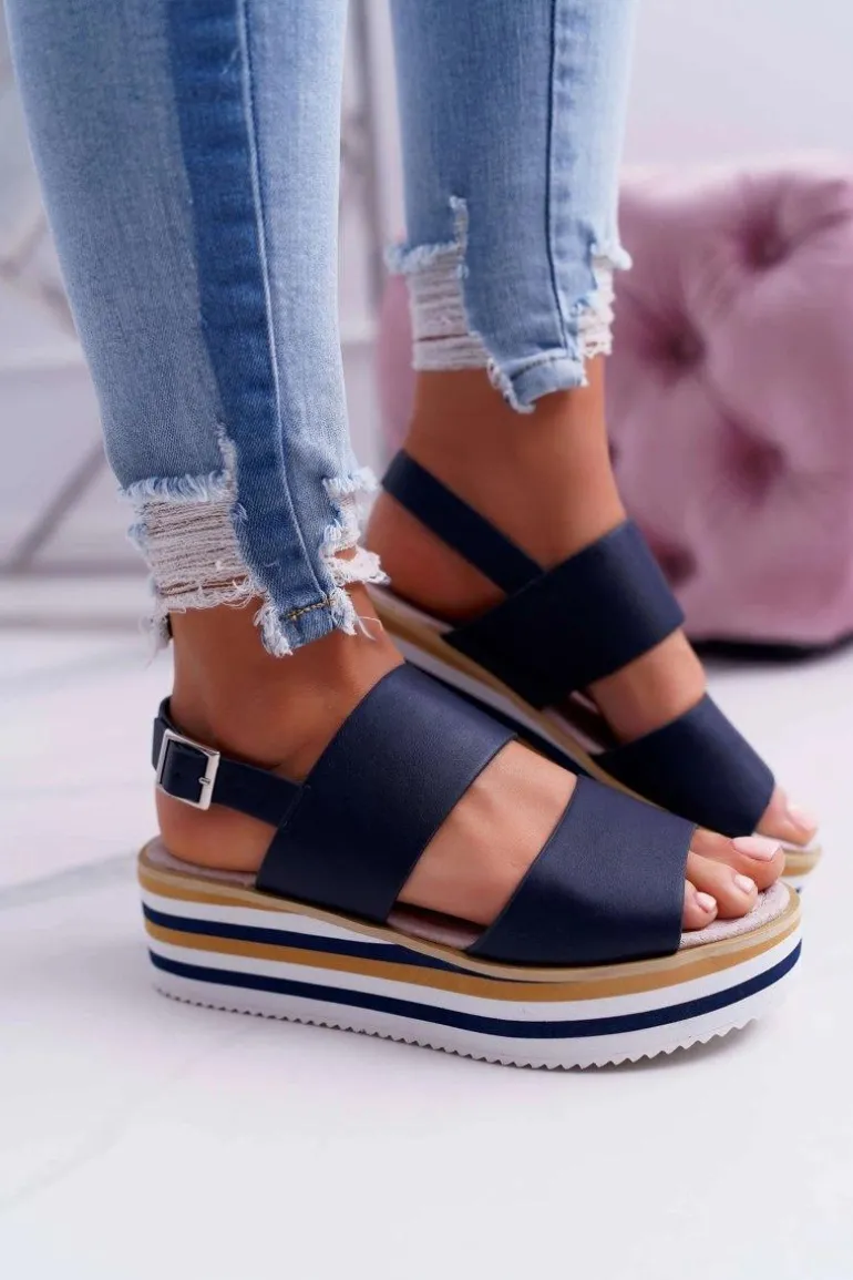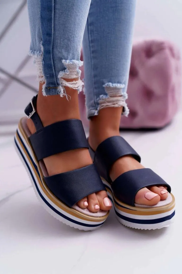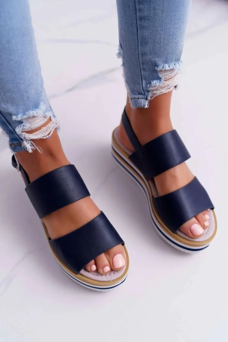 Sandały Damskie Na Platformie Granatowe Aurera