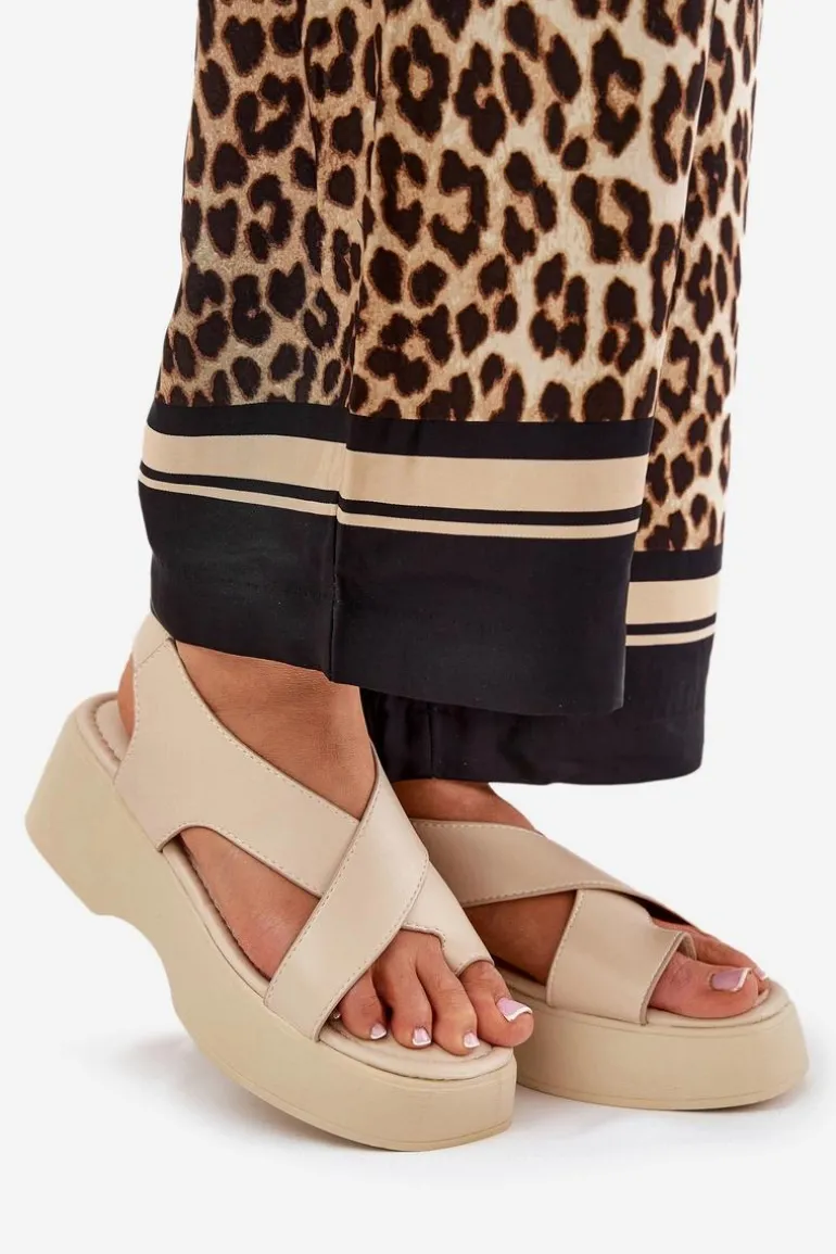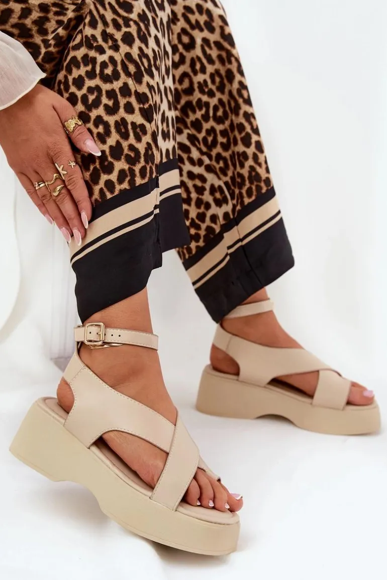 Sandały damskie z eko skóry, osadzone na platformie i delikatnym koturnie, które łączą wygodę z modnym wyglądem. Zapinane wokół kostki na sprzączkę z regulowanym paskiem, co pozwala na idealne dopasowanie do stopy. Miękka wkładka zapewnia komfort przez cały dzień. Idealne na ciepłe dni, te sandały doskonale komponują się z sukienkami, spódnicami oraz spodniami, dodając każdej stylizacji lekkości. Przy wyborze rozmiaru prosimy sugerować się tabelą rozmiarów.