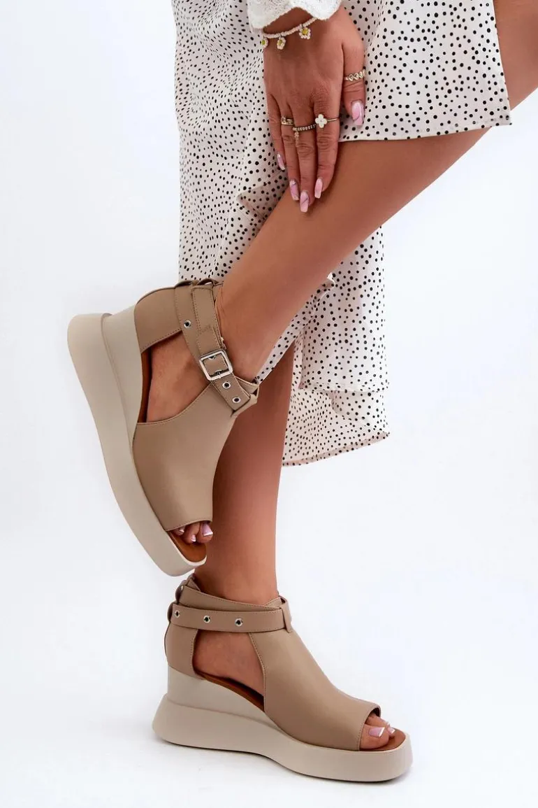Sandały damskie marki Jezzi wykonane z eko skóry. Platforma i koturn nadają im nowoczesny wygląd i zapewniają wygodę noszenia. Góra cholewki ozdobiona paskami. Te sandały z pewnością będą przyciągać uwagę! Przy wyborze rozmiaru prosimy sugerować się tabelą rozmiarów.