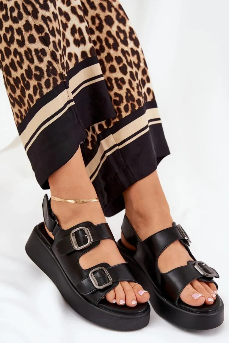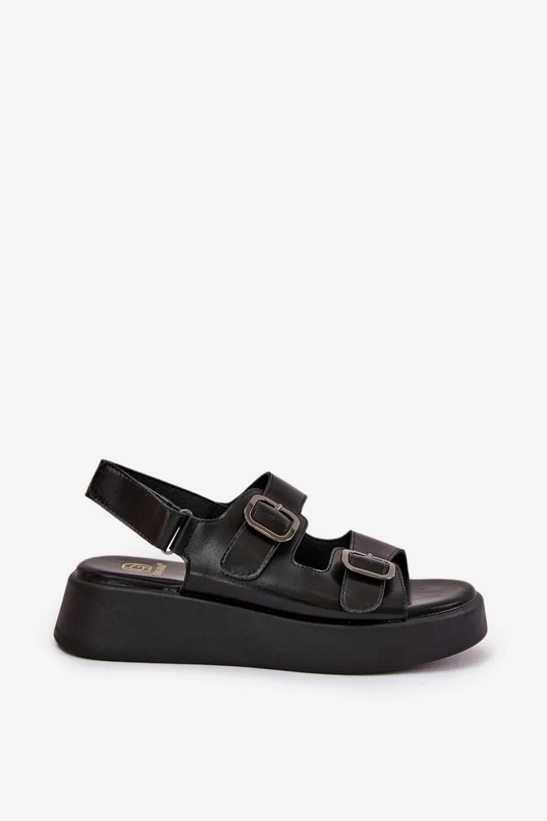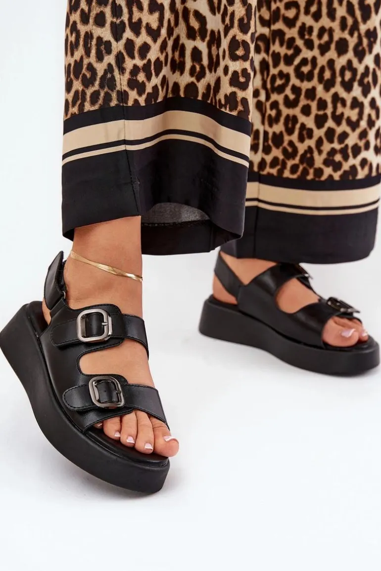 Sandały Damskie Na Platformie I Koturnie Z Klamrami Czarne Genorre