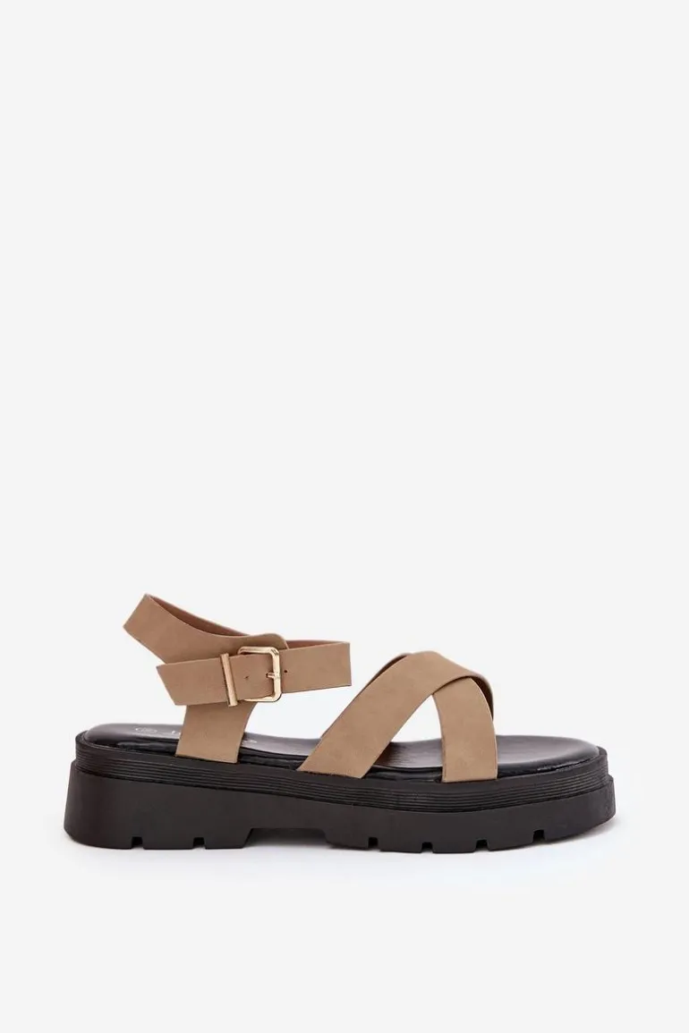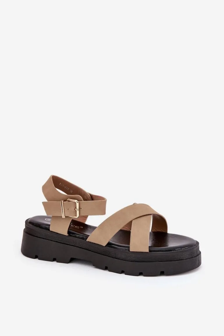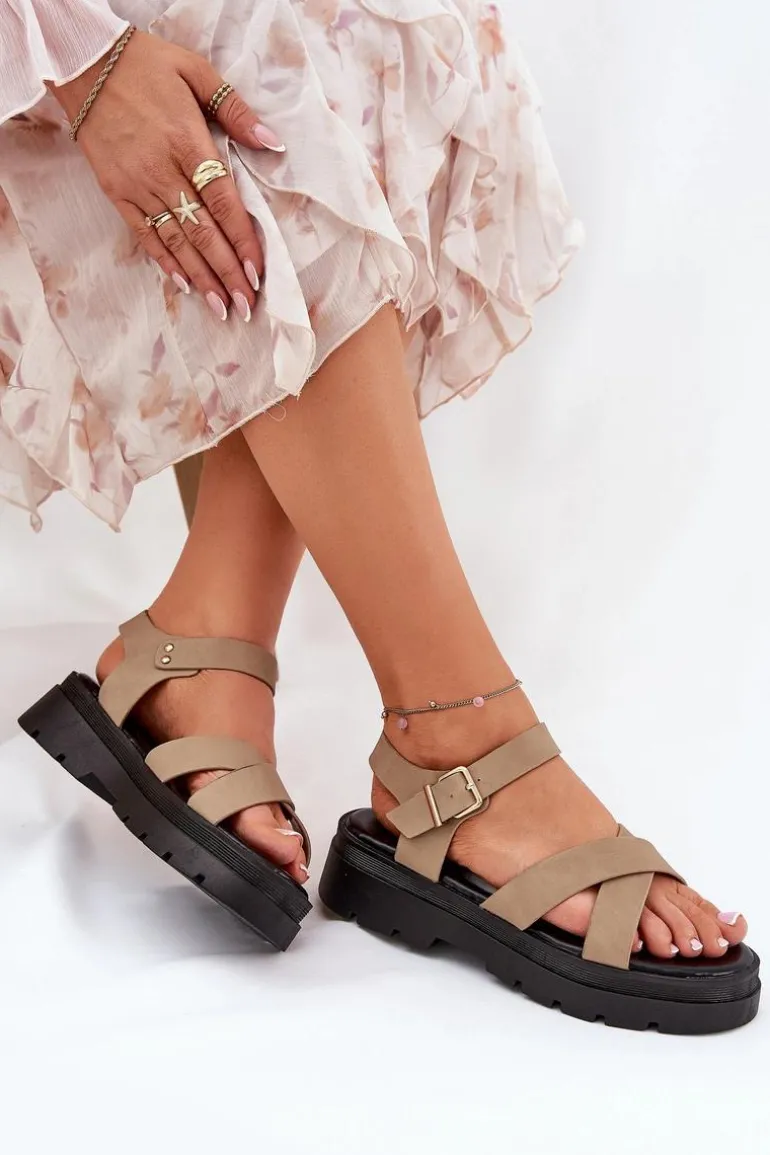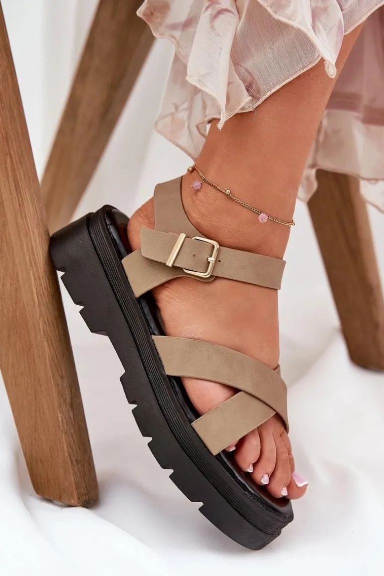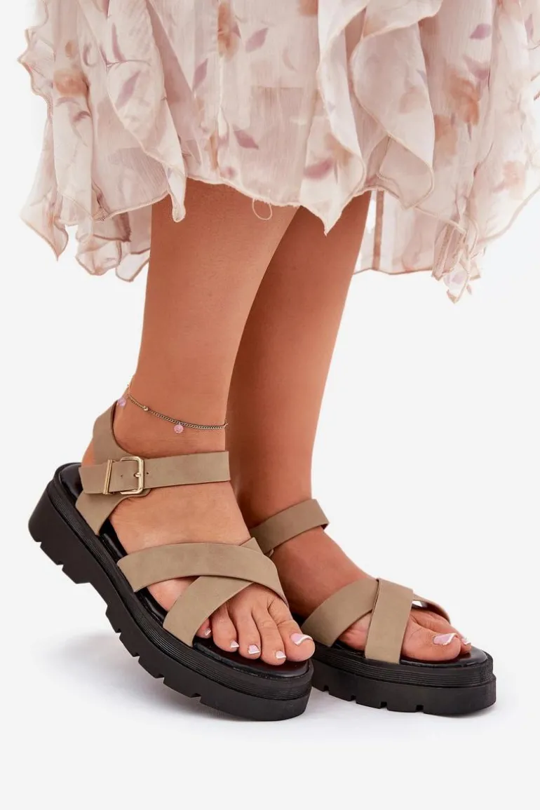 Sandały Damskie Na Platformie Z Eko Skóry Khaki Gevinniser