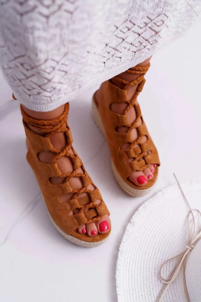Sandały Damskie Na Platformie Z Espadrylem Sznurowane Camel Grand