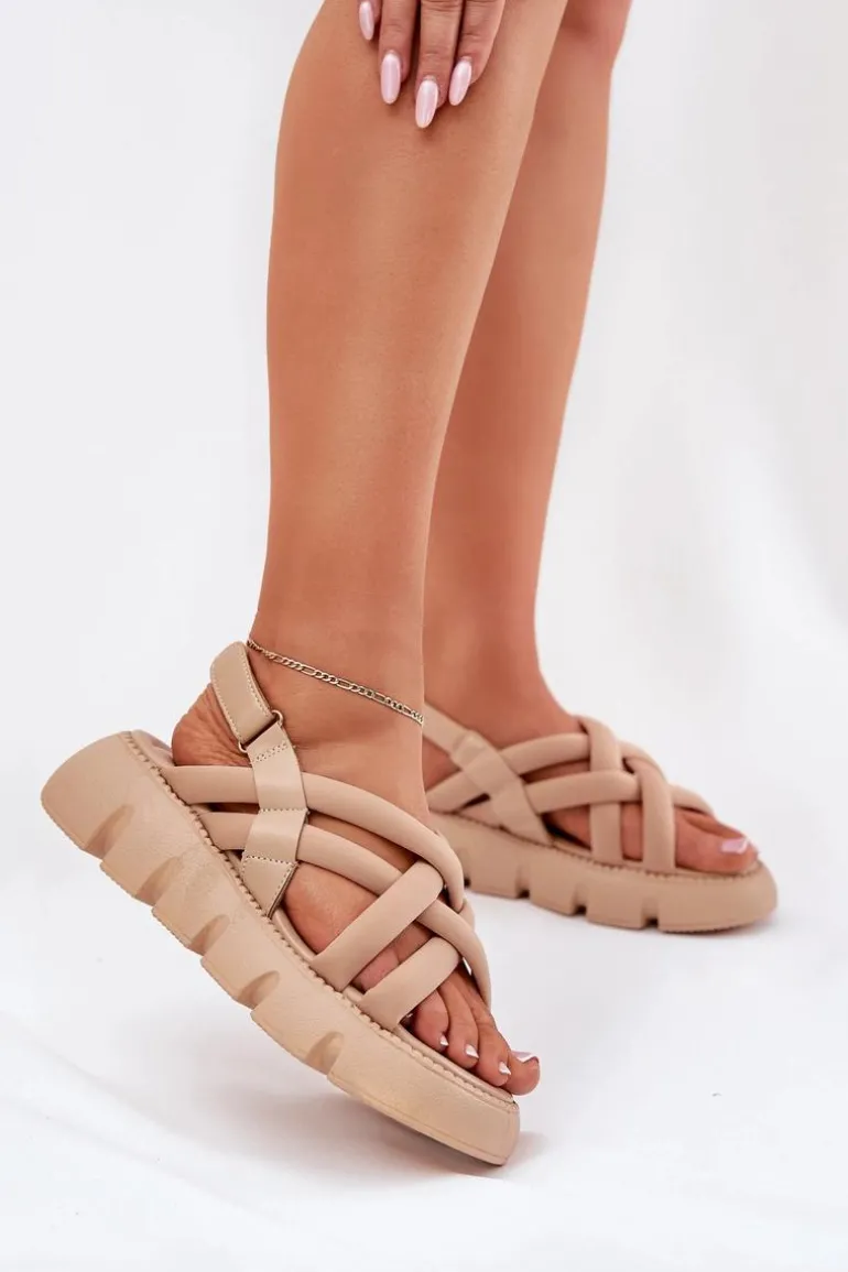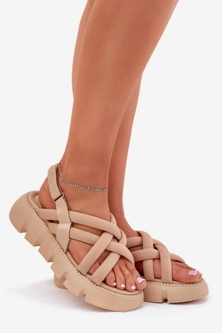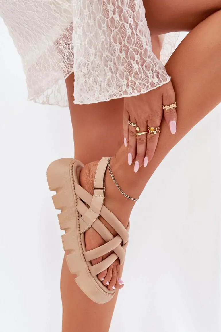 Damskie sandały na platformie to świetna opcja na ciepłe dni, łącząca styl z wygodą. Model ten zapinany na rzep zapewnia łatwość zakładania i idealne dopasowanie do stopy. Z przodu sandały wyróżniają się przeplatającymi się paskami, które dodają im nowoczesnego charakteru. Idealne do codziennych stylizacji! Przy wyborze rozmiaru prosimy sugerować się tabelą rozmiarów.