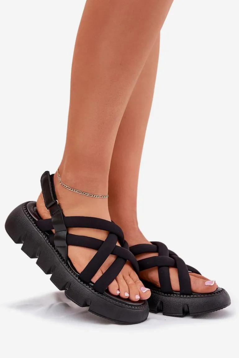 Damskie sandały na platformie to świetna opcja na ciepłe dni, łącząca styl z wygodą. Model ten zapinany na rzep zapewnia łatwość zakładania i idealne dopasowanie do stopy. Z przodu sandały wyróżniają się przeplatającymi się paskami, które dodają im nowoczesnego charakteru. Idealne do codziennych stylizacji! Przy wyborze rozmiaru prosimy sugerować się tabelą rozmiarów.