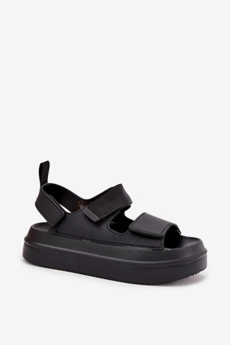 Sandały Damskie Na Platformie Z Rzepami Czarne Nitepira