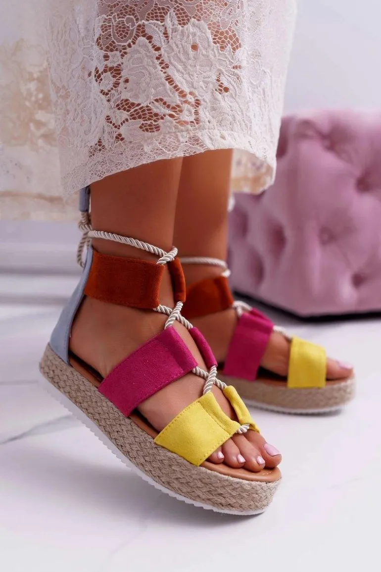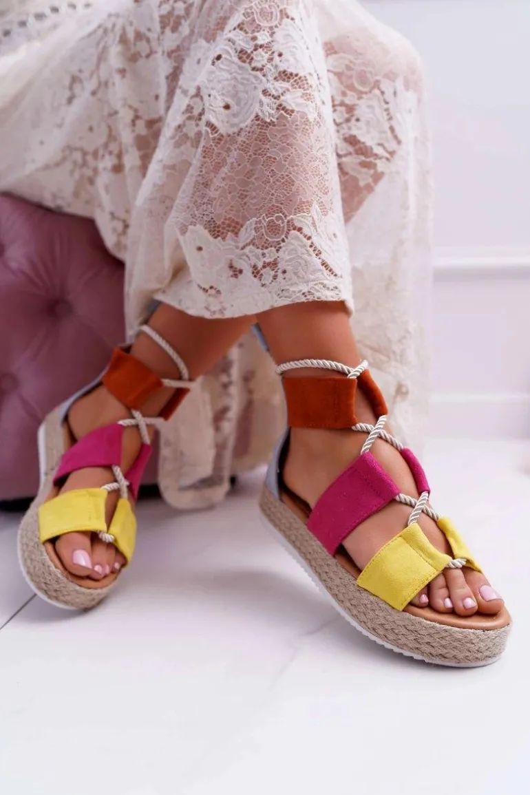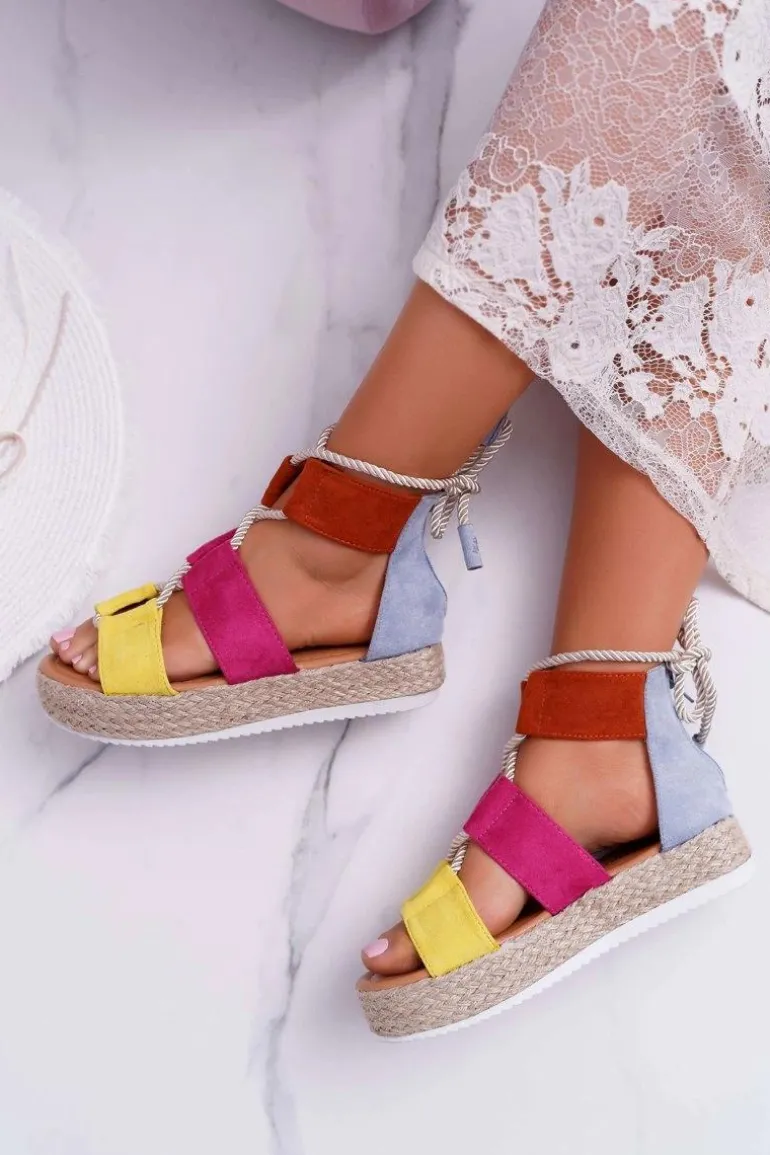 Sandały Damskie na Platformie Zamszowe Wielokolorowe Ergola