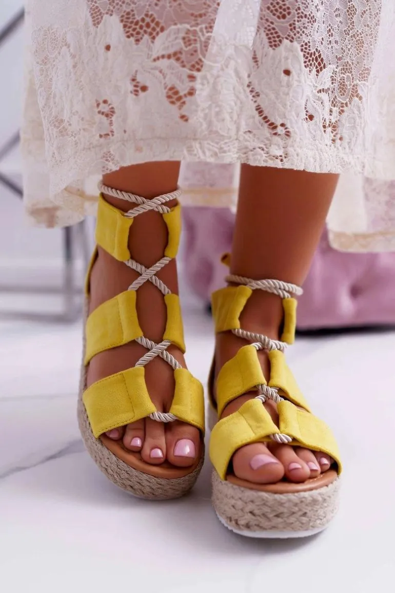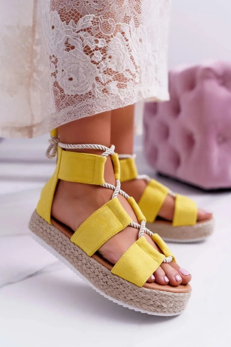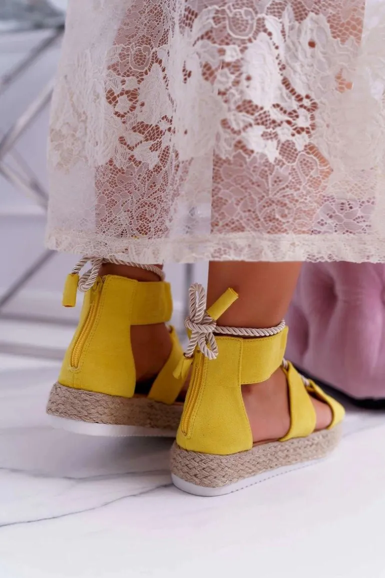 Sandały Damskie na Platformie Zamszowe Żółte Ergola