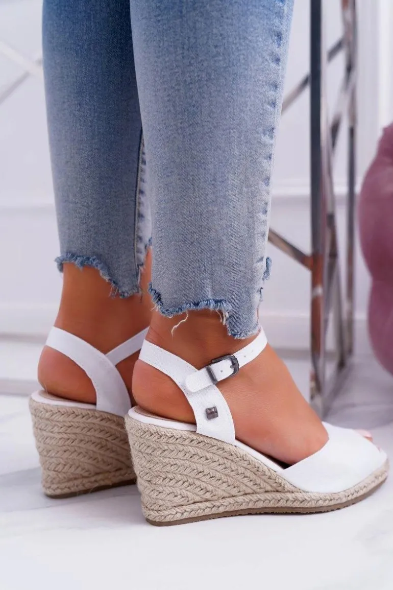 Sandały Damskie Na Plecionej Koturnie Big Star Białe DD274A231