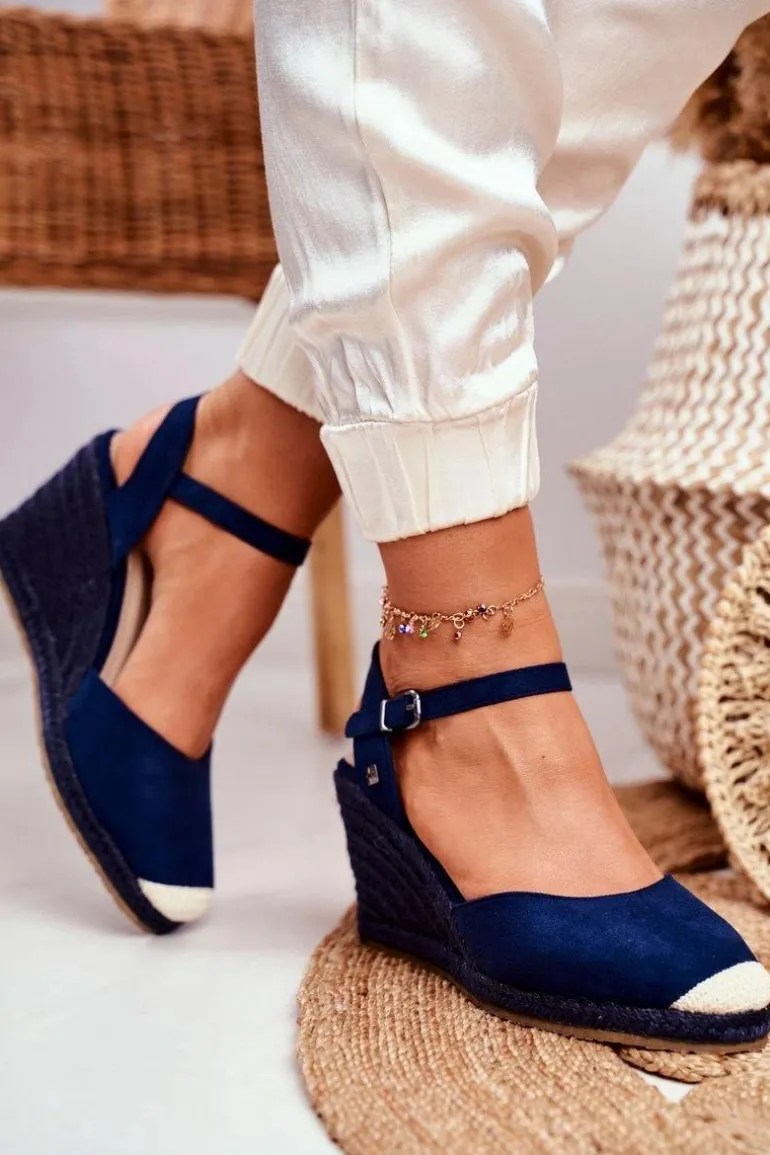 Sandały Damskie Na Plecionej Koturnie Big Star Granatowe DD274A172