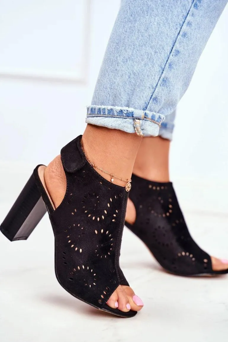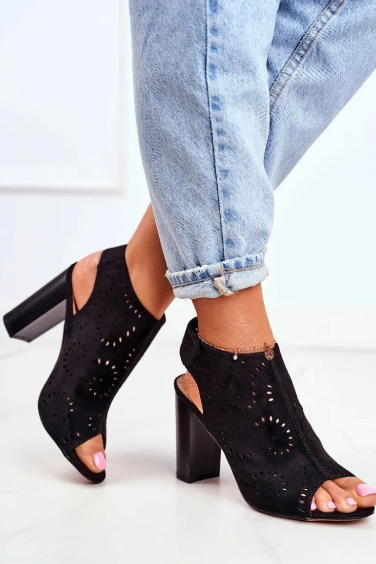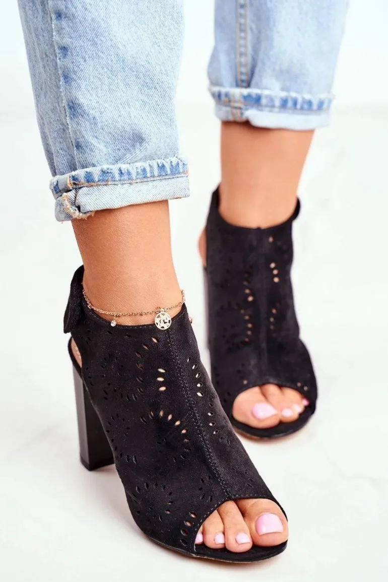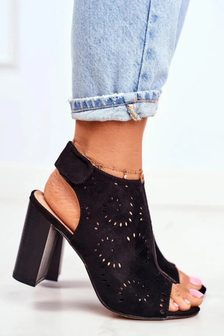 Sandały Damskie Na Słupku Ażurowe Na Rzep Czarne Rules