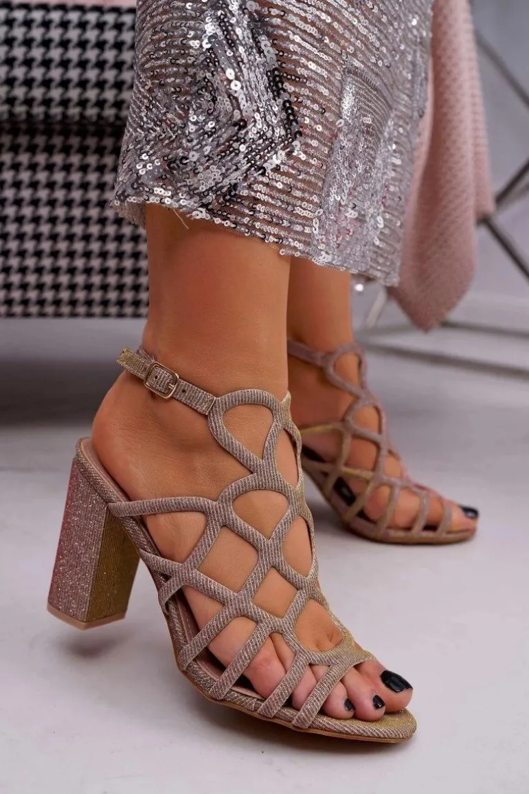 Sandały Damskie Na Słupku Brokatowe Champagne Gete