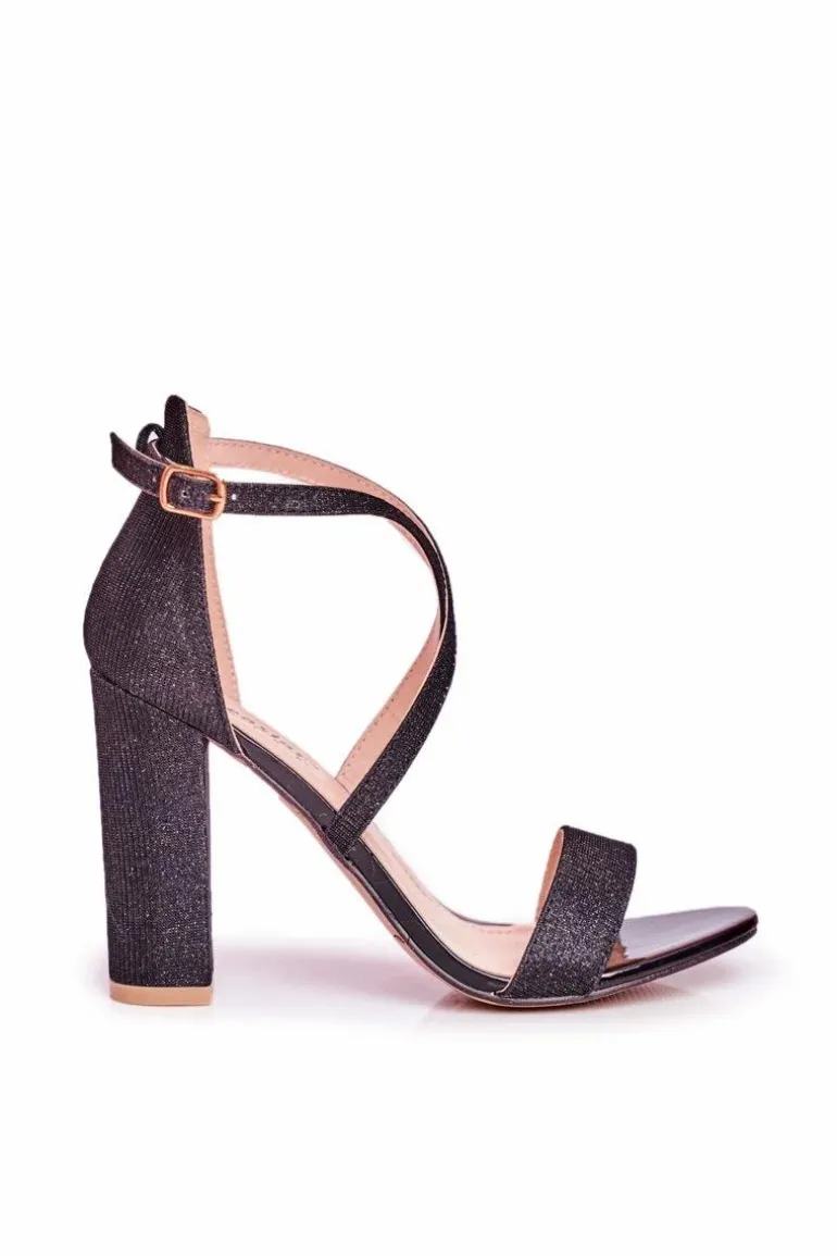 Sandały Damskie Na Słupku Brokatowe Czarne Vivi