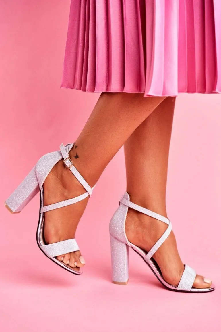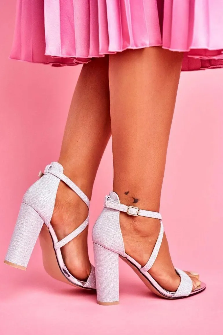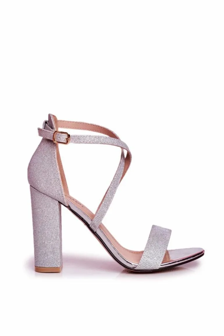 Sandały Damskie Na Słupku Brokatowe Srebrne Vivi