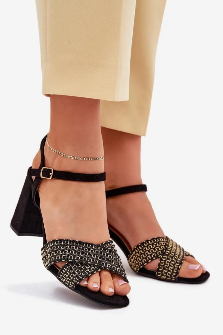 Sandały damskie wykonane z eko zamszu. Osadzone na słupkowym obcasie, który zapewnia stabilność i wygodę przez cały dzień. Zapinane na sprzączkę z regulowanym paskiem, pozwalają na idealne dopasowanie do stopy. Dwa przeplatające się paski z przodu przyciągają wzrok. Doskonałe do letnich sukienek, spódnic czy eleganckich spodni, stanowią idealne uzupełnienie kobiecych stylizacji na każdą okazję. Przy wyborze rozmiaru prosimy sugerować się tabelą rozmiarów.