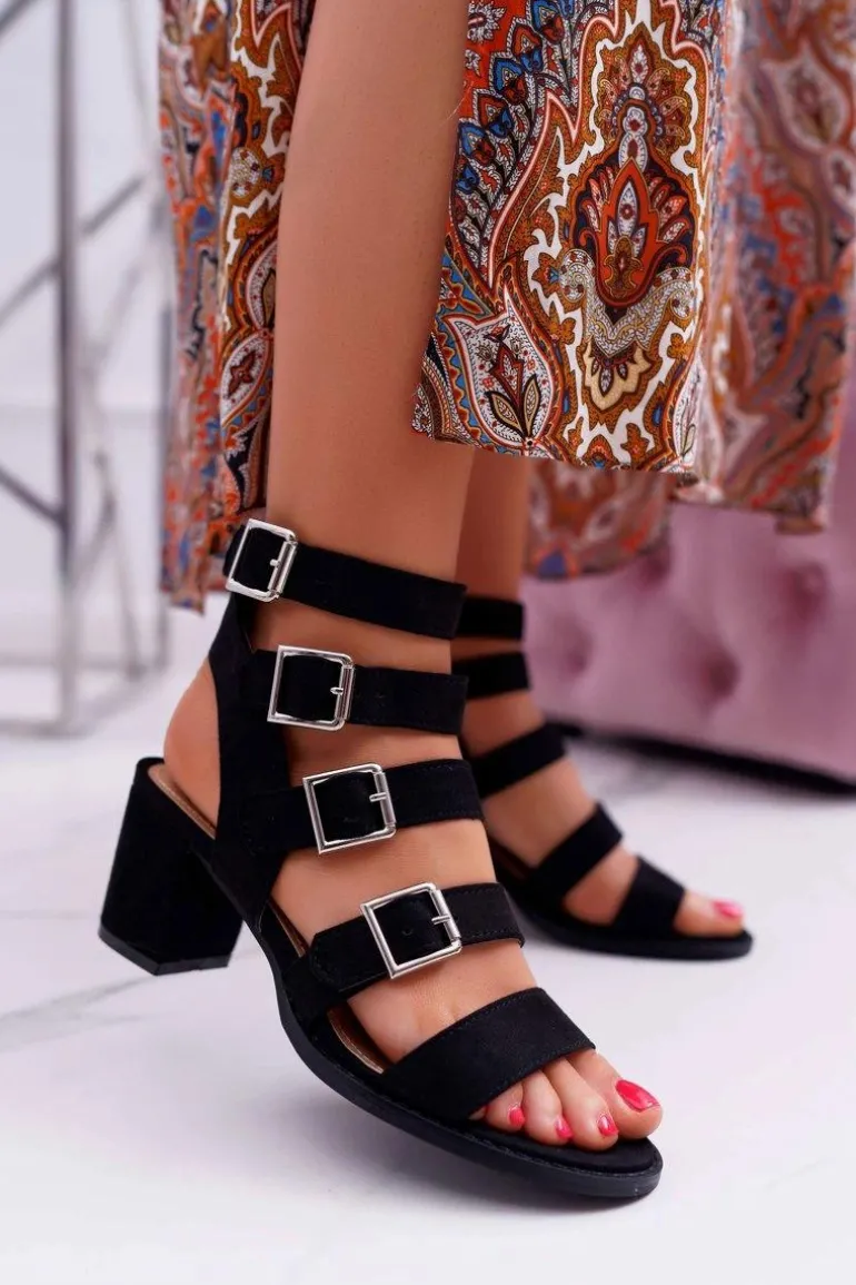 Sandały Damskie Na Słupku Gladiatorki Zamsz Czarne Nella