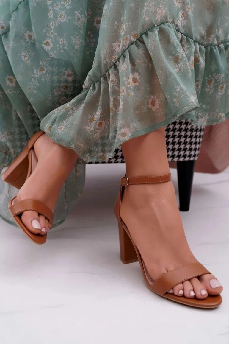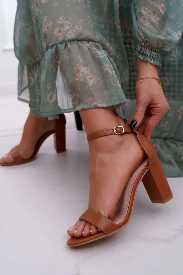 Sandały Damskie Na Słupku Klasyczne Camel Fiji