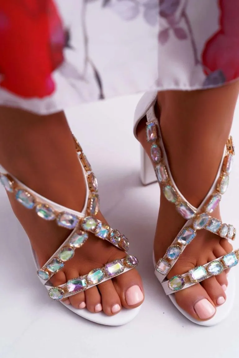 Sandały Damskie Na Słupku Lu Boo Białe 8258-1 Vernee