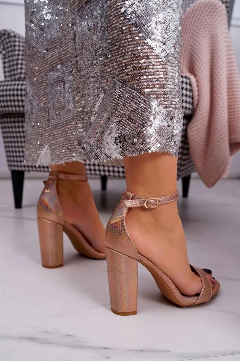 Sandały Damskie Na Słupku Opalizujące Benzynowe Champagne Bipper