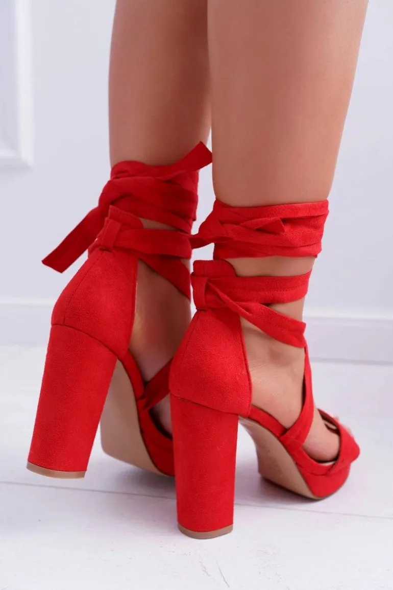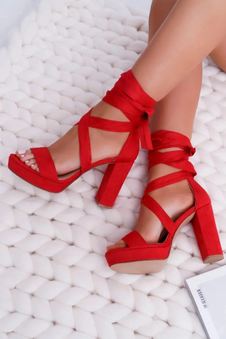 Sandały Damskie Na Słupku Platforma Wiązane Czerwone LaFiesta