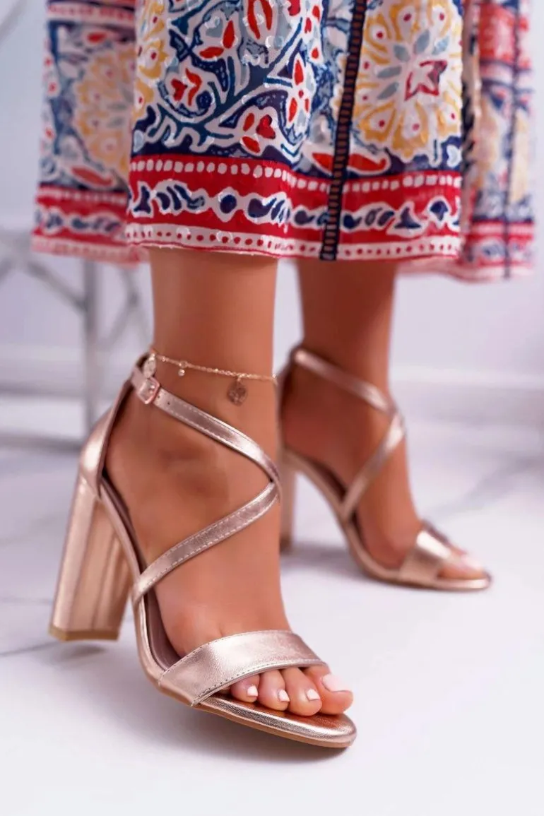 Sandały Damskie Na Słupku Różowe Złoto Klaira