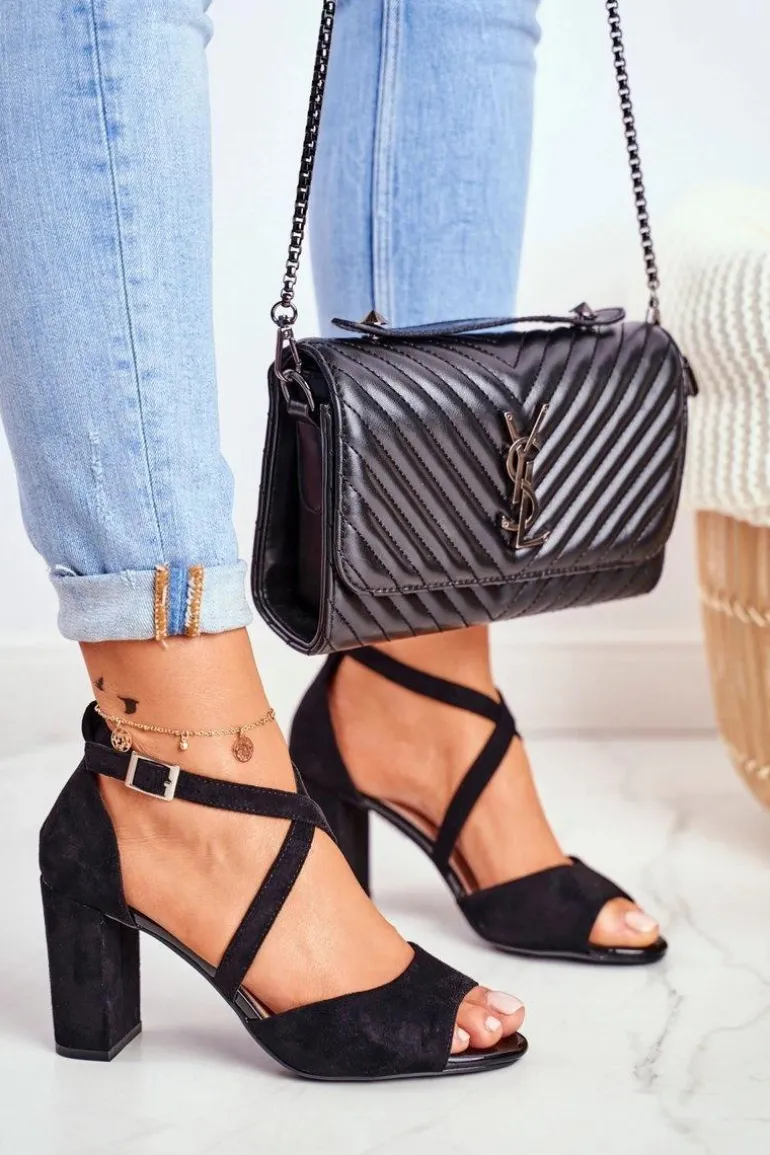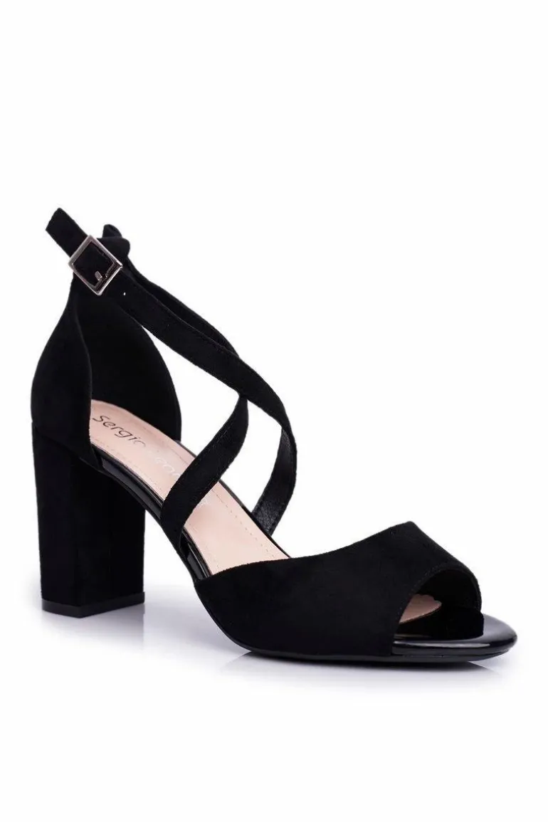 Sandały Damskie Na Słupku Sergio Leone Czarne SK865
