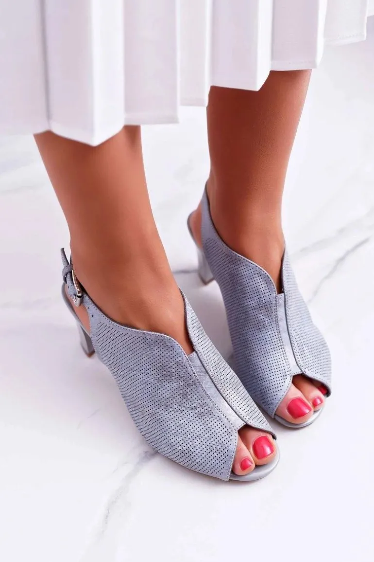 Sandały Damskie Na Słupku Sergio Leone SK800 Szare Fanfara