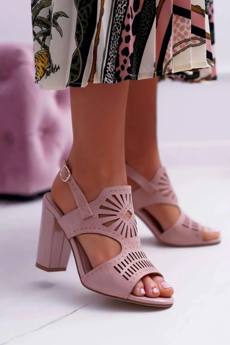 Sandały Damskie Na Słupku Sergio Leone SK852 Zamszowe Różowe Diven