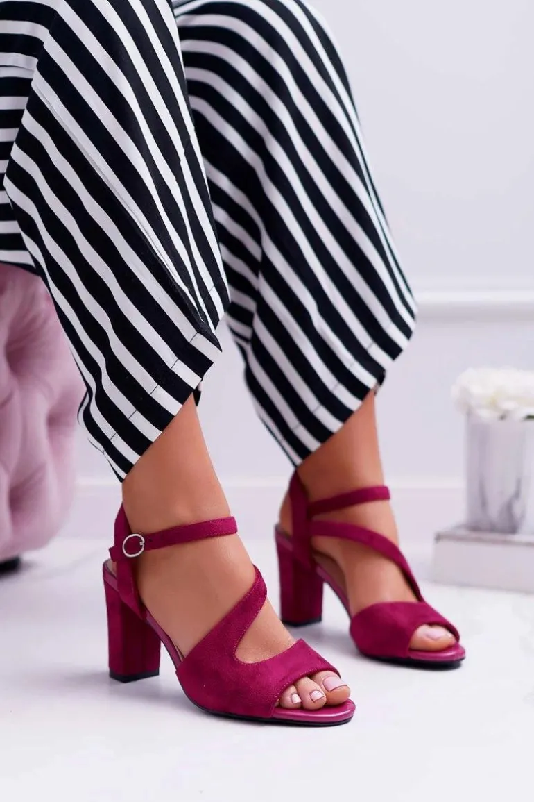 Sandały Damskie Na Słupku Sergio Leone SK868 Fuksja Zamsz Mersi