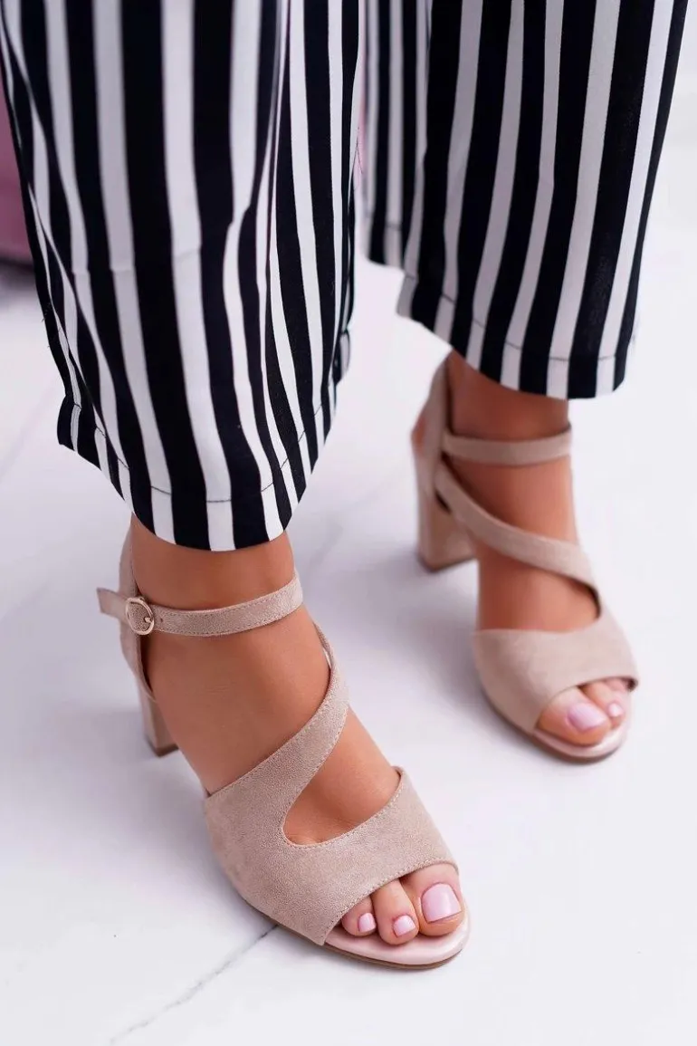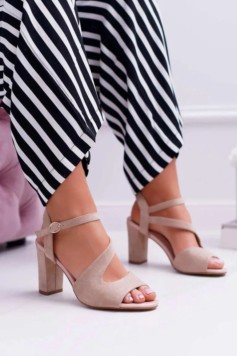 Sandały Damskie Na Słupku Sergio Leone SK868 Zamszowe Beżowe Mersi