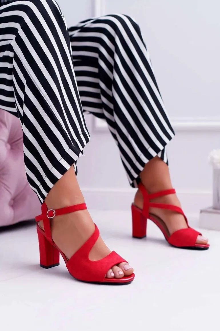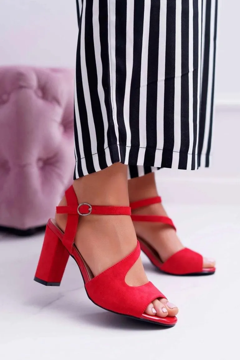 Sandały Damskie Na Słupku Sergio Leone SK868 Zamszowe Czerwone Mersi