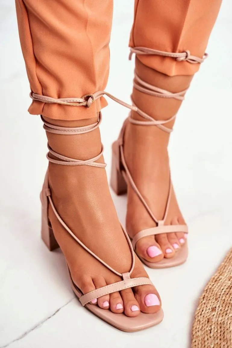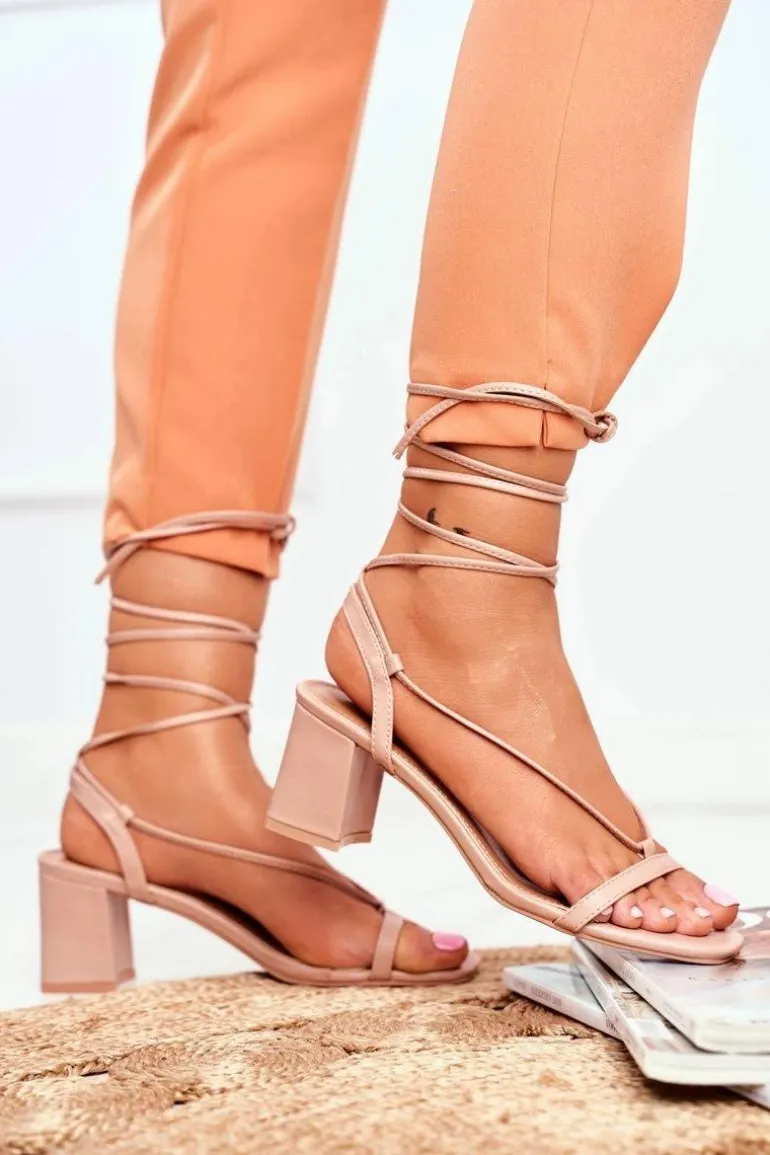 Sandały Damskie Na Słupku Wiązane Beżowe Morning