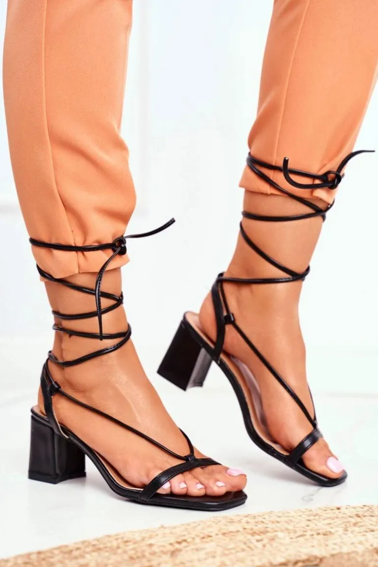 Sandały Damskie Na Słupku Wiązane Czarne Morning