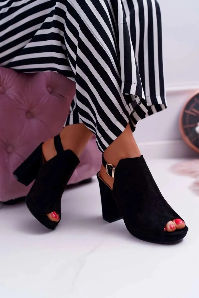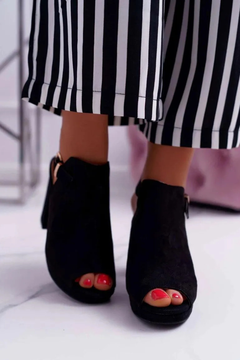 Sandały Damskie Na Słupku Z Cholewką Odkryte Palce Czarne Montree