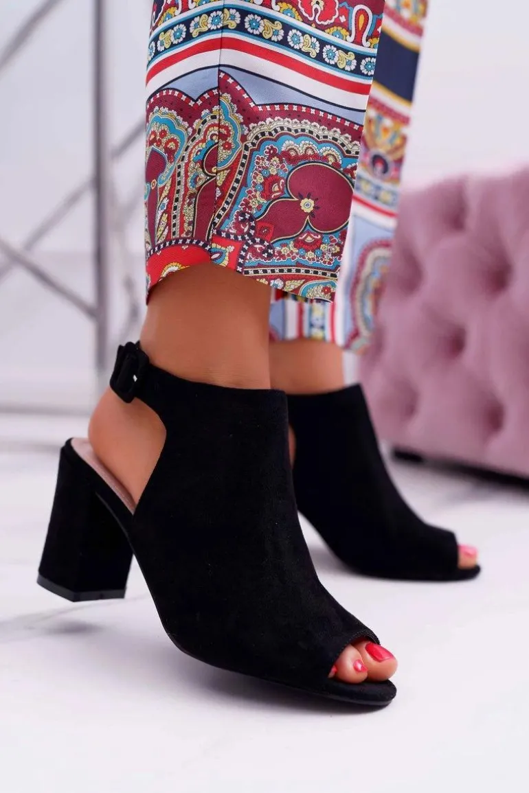 Sandały Damskie Na Słupku Z Cholewką Peep Toe Czarne Esta